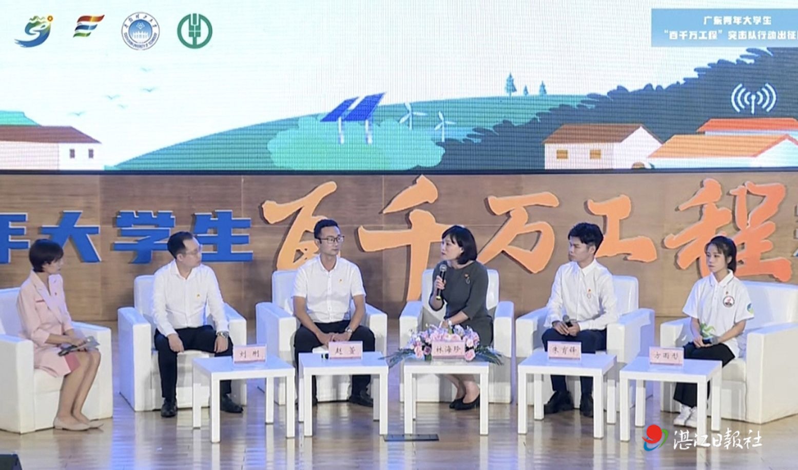 曲界镇党委书记林海珍作为全省唯一代表在省大学生“百千万”突击队出征仪式上介绍“菠萝公社”工作情况。通讯员陈优 摄