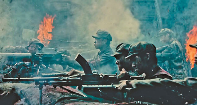 在《浴血荣光》中,陈力导演延续了其真实厚重、沉郁激越的影像风格,让影像深度参与叙事,剧集对于不同的场景叙事采用了不同的影像风格。南昌起义、三坝河阻击战、井冈山丛林游击战等战斗大场面,炮火纷飞、震撼人心;而与家庭相关的影像则趋向温暖动人。