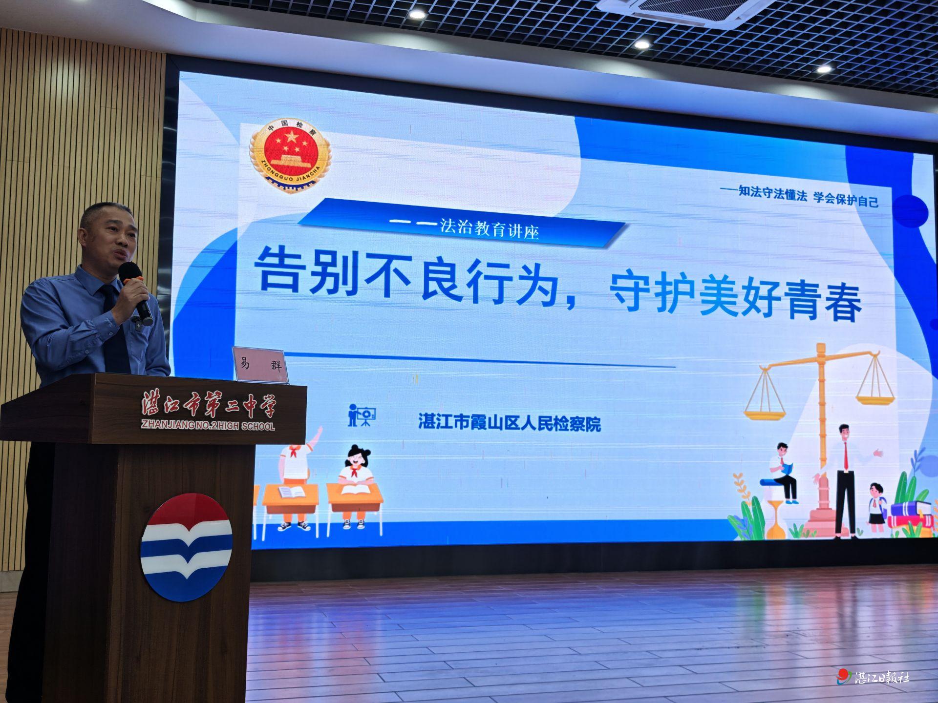 10月31日,霞山区检察院与湛江市第二中学携手举办“法治护航成长”专题讲座。霞山区检察院党组书记、检察长带领18名检察官团队,为该校七八年级学生送上一堂兼具专业性与趣味性的普法教育课。