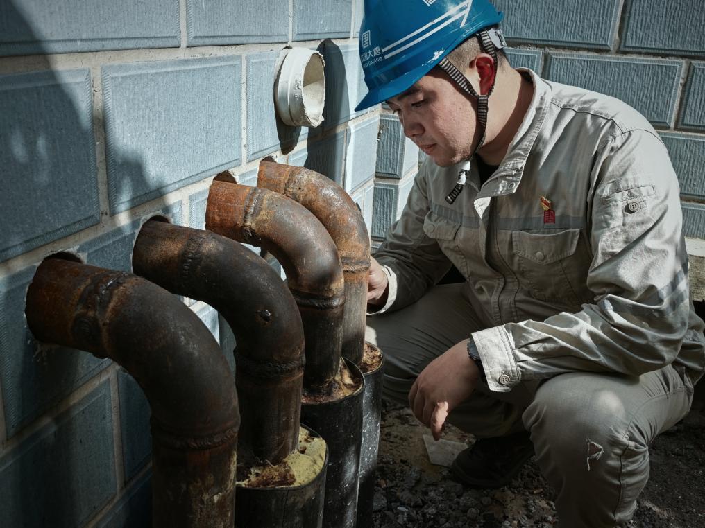 图为辽宁大唐国际沈抚热力有限责任公司的工作人员正在检修设备。(受访者供图)