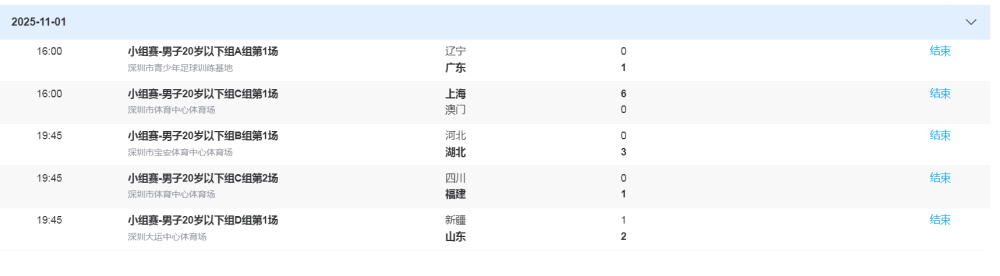 C组两场比赛中,刘诚宇上演“帽子戏法”,王一凡、刘铁诚和张俊杰各入一球,上海队6:0大胜澳门队。福建队则凭借邓棽竹的制胜球1:0战胜四川队。B组湖北队3:0击败河北队。
