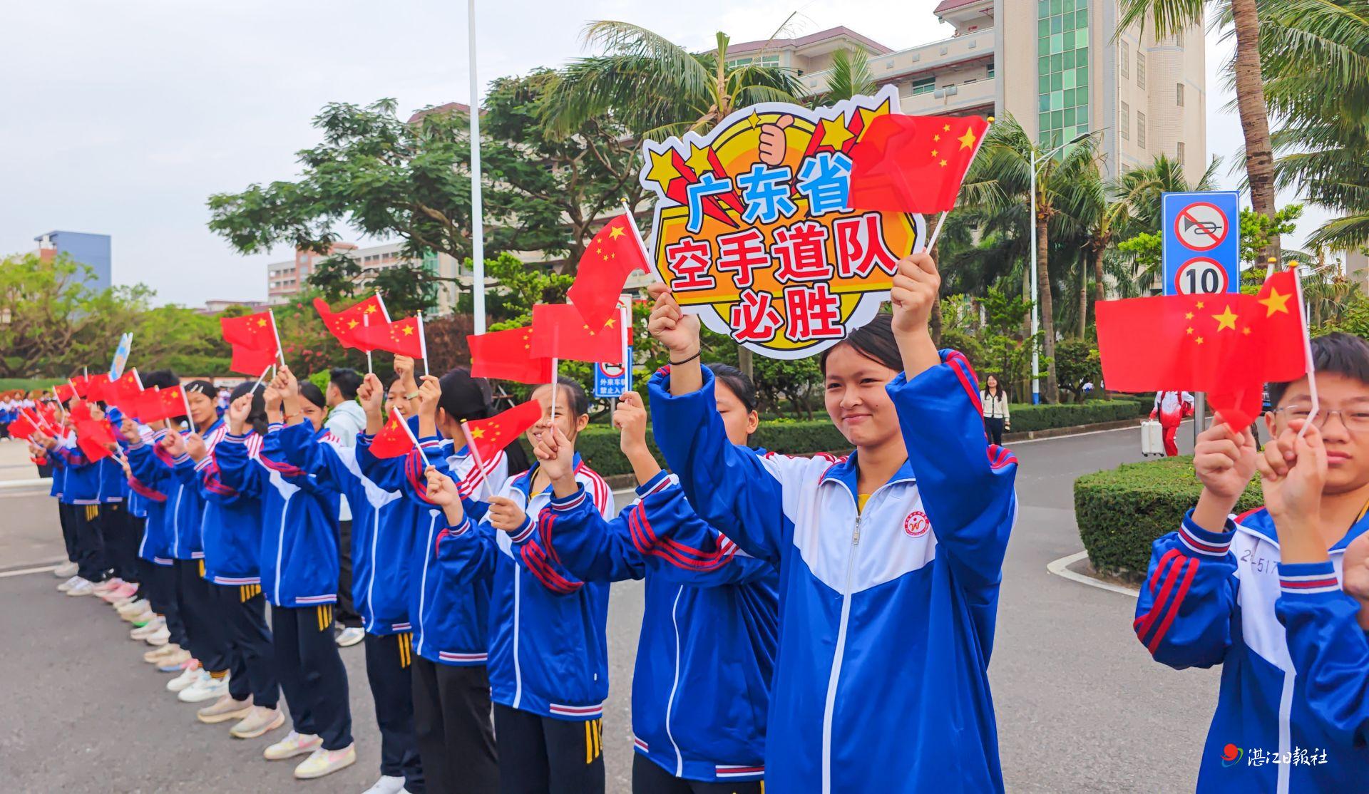 11月3日,湛江市少林学校内锣鼓喧天,醒狮腾跃,第十五届全国运动会群众比赛空手道项目广东省代表队出征仪式在此举行。由1名领队、3名教练、14名运动员及1名队医组成的19人队伍,正式踏上奔赴澳门的决赛征程,将在11月6-8日的澳门综艺馆内,向全运会群众比赛空手道项目奖牌发起冲击。