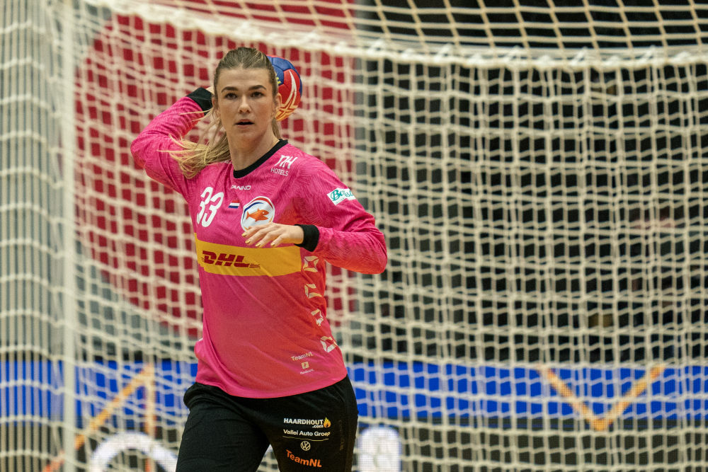 2023年12月2日,在丹麦举行的第26届女子手球世锦赛中,荷兰队迎战刚果(布)队,图为韦斯特在比赛中。新华社发 亨克·塞彭 摄