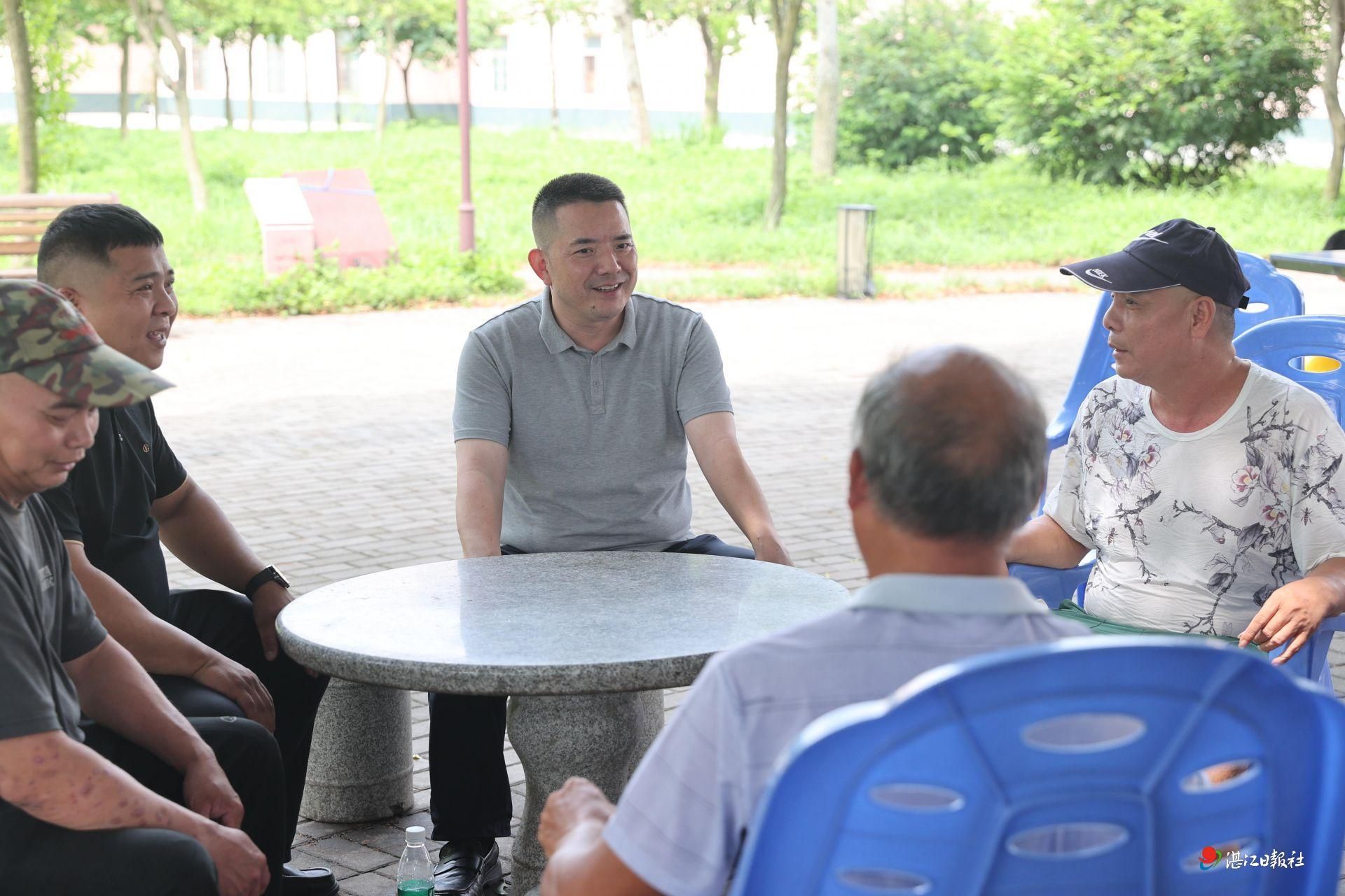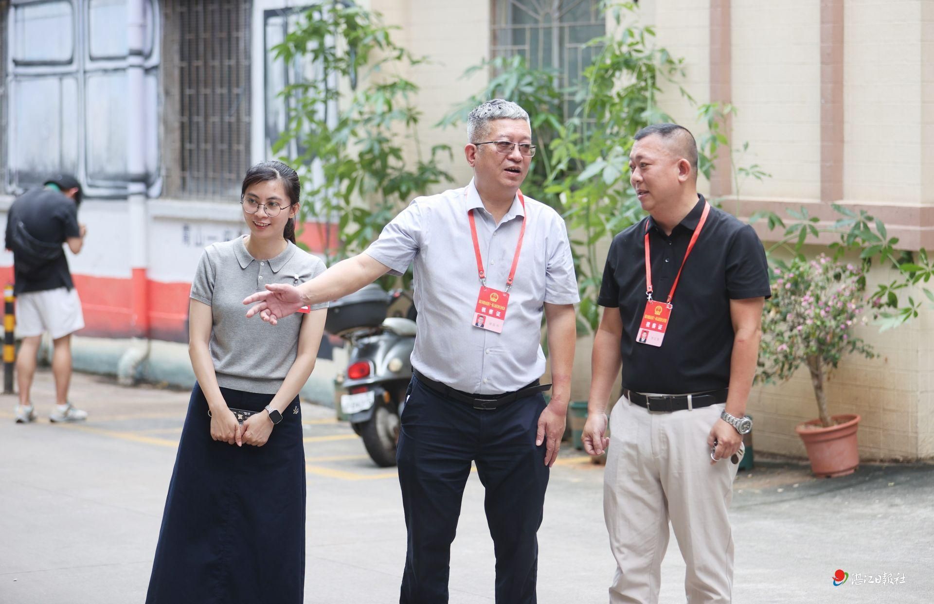 谢磊华(中)走访霞山区老旧小区。记者李忠 摄