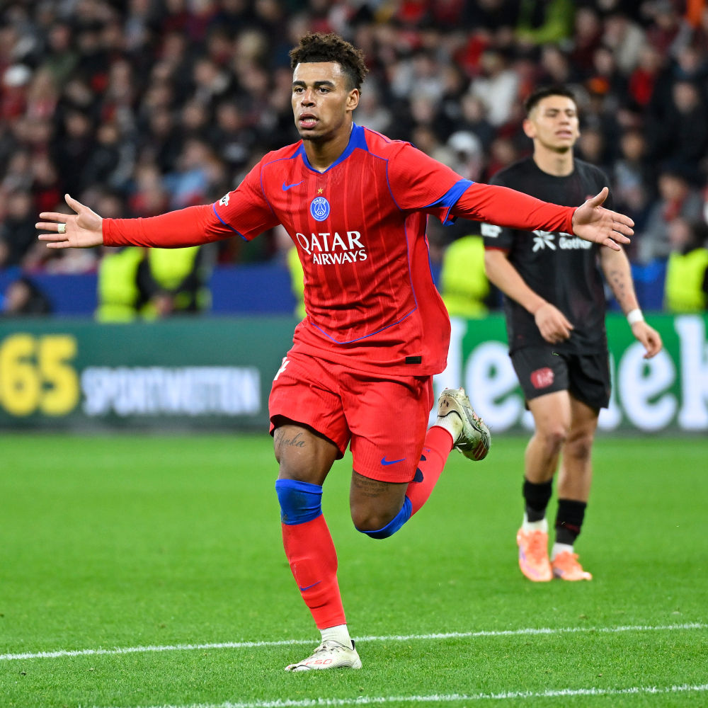10月21日,巴黎圣日耳曼队球员杜埃庆祝得分。当日,在德国勒沃库森举行的2025-2026赛季欧冠联赛阶段第三轮比赛中,德甲勒沃库森队主场2:7不敌法甲巴黎圣日耳曼队。新华社发(乌尔里希·胡夫纳格尔摄)