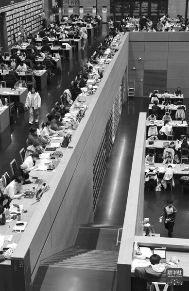 天气渐冷,读者们在国家图书馆温暖舒适的环境中读书、学习。 新华社
