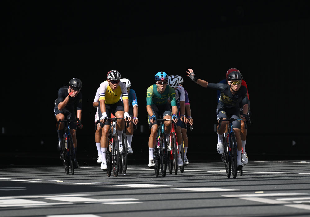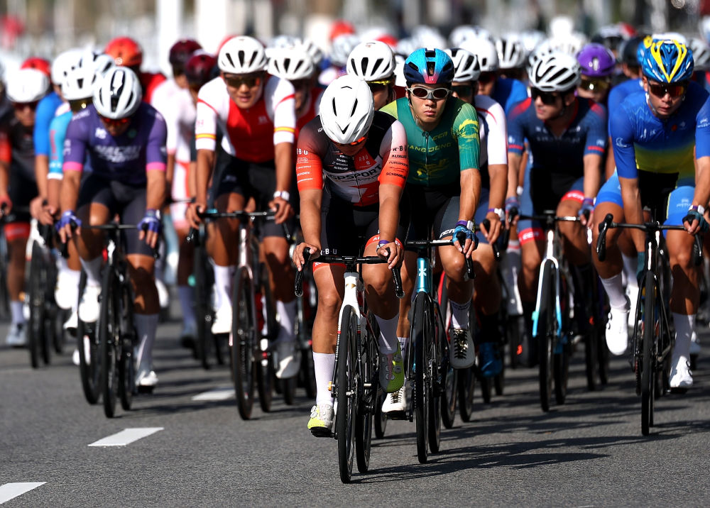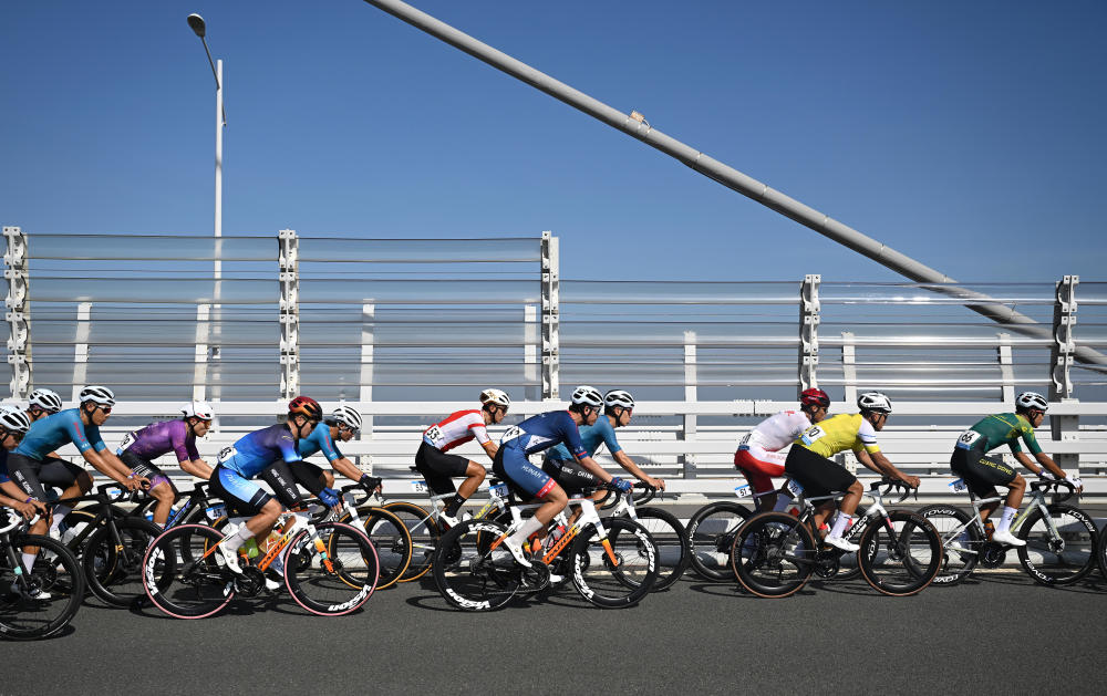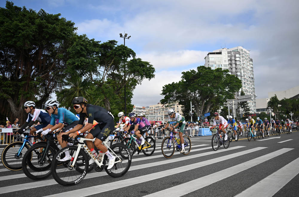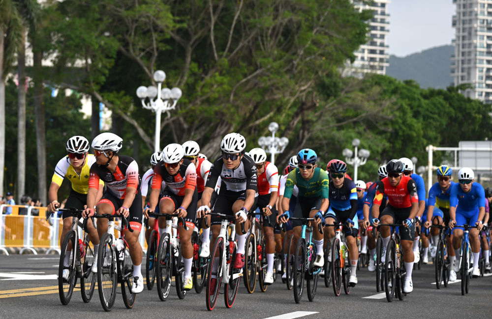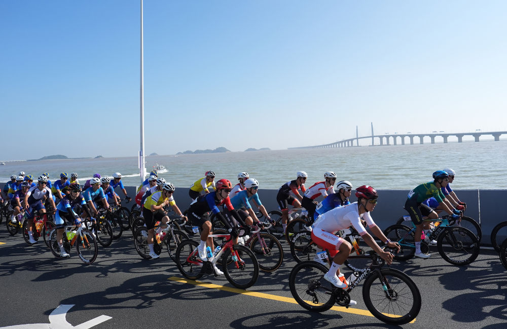 ↑11月8日,选手们在公路自行车男子个人赛决赛中。
