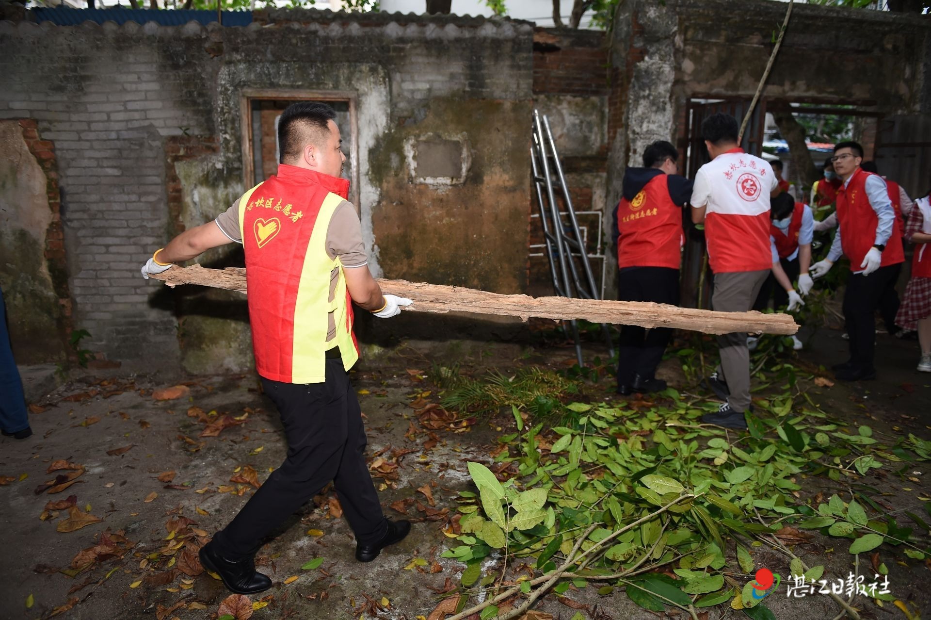 在赤坎区民主街道三民社区,市委办组织45位党员干部带着清理工具,聚焦片区老旧荒废庭院和周边巷道的卫生痛点,清理院子里堆积多年的枯枝败叶、废旧铁皮与杂物,用枝剪小心修剪过高过密的树枝,锯断倾倒的枯木并分段搬运,将各类垃圾分类打包后装车清运,原本落叶飘零、杂物占道的庭院巷道,经过细致清扫变得干净通透。