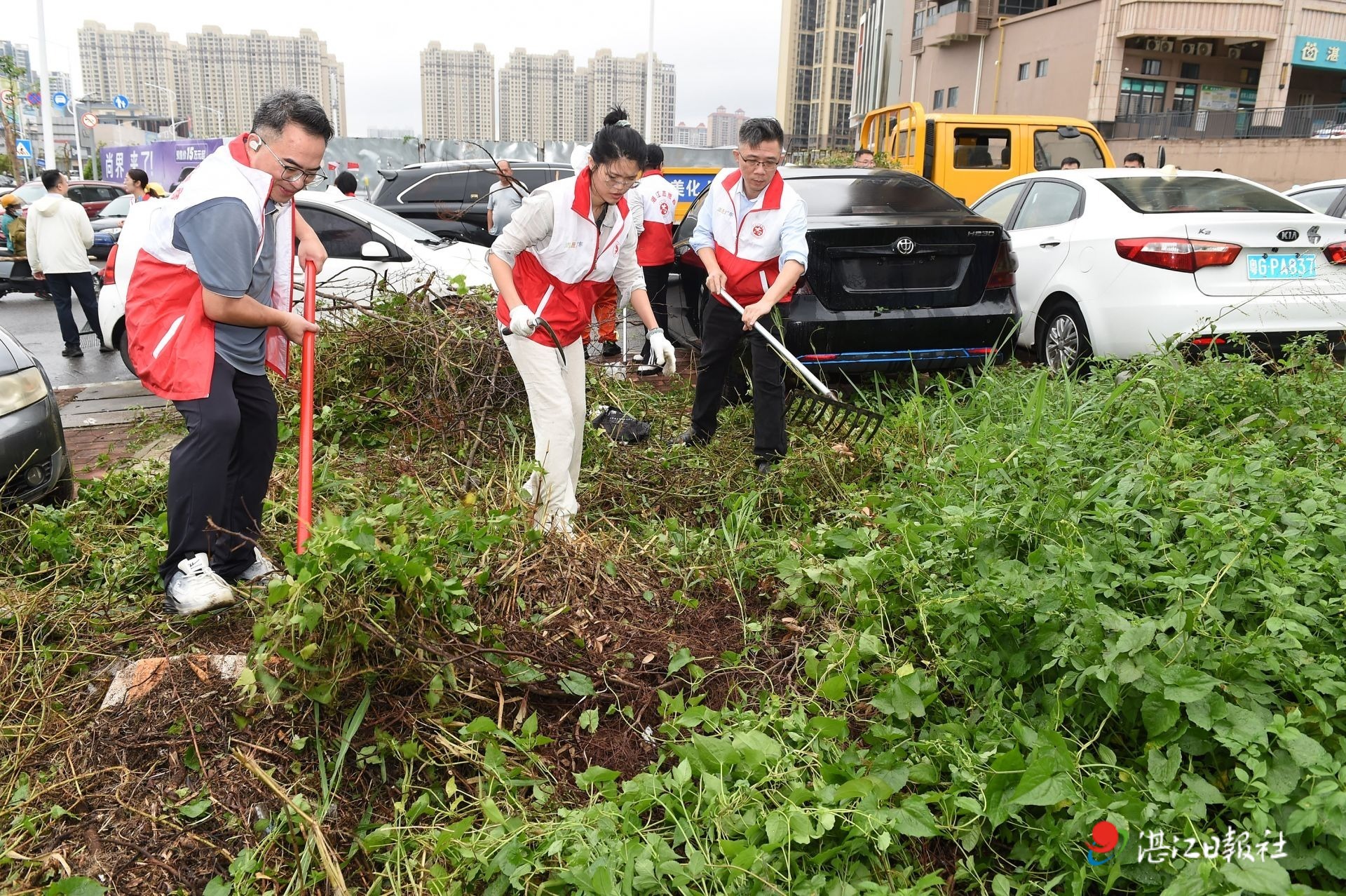 11月7日下午,市委宣传部党员干部和赤坎振华社区工作人员在蓝天路进行清扫路边杂草。