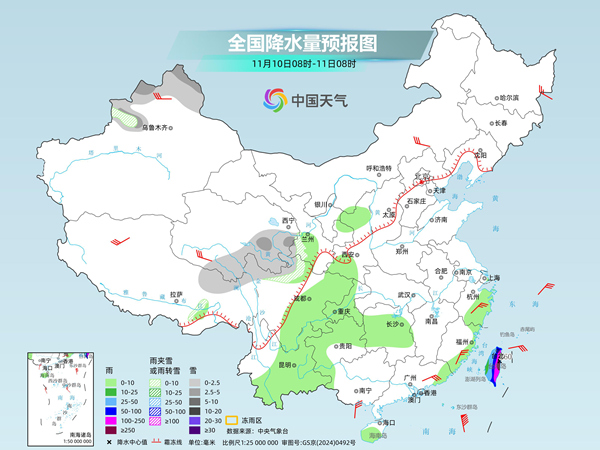 明天,新疆北疆地区和伊犁河谷、西藏东部、西北地区中部、川西高原北部等地部分地区有小到中雪或雨夹雪。西南地区东部和南部、湖南中部和西部、华南沿海地区、海南岛中部和南部、台湾岛等地的部分地区有小到中雨,其中,台湾岛部分地区有大到暴雨,局地大暴雨或特大暴雨。