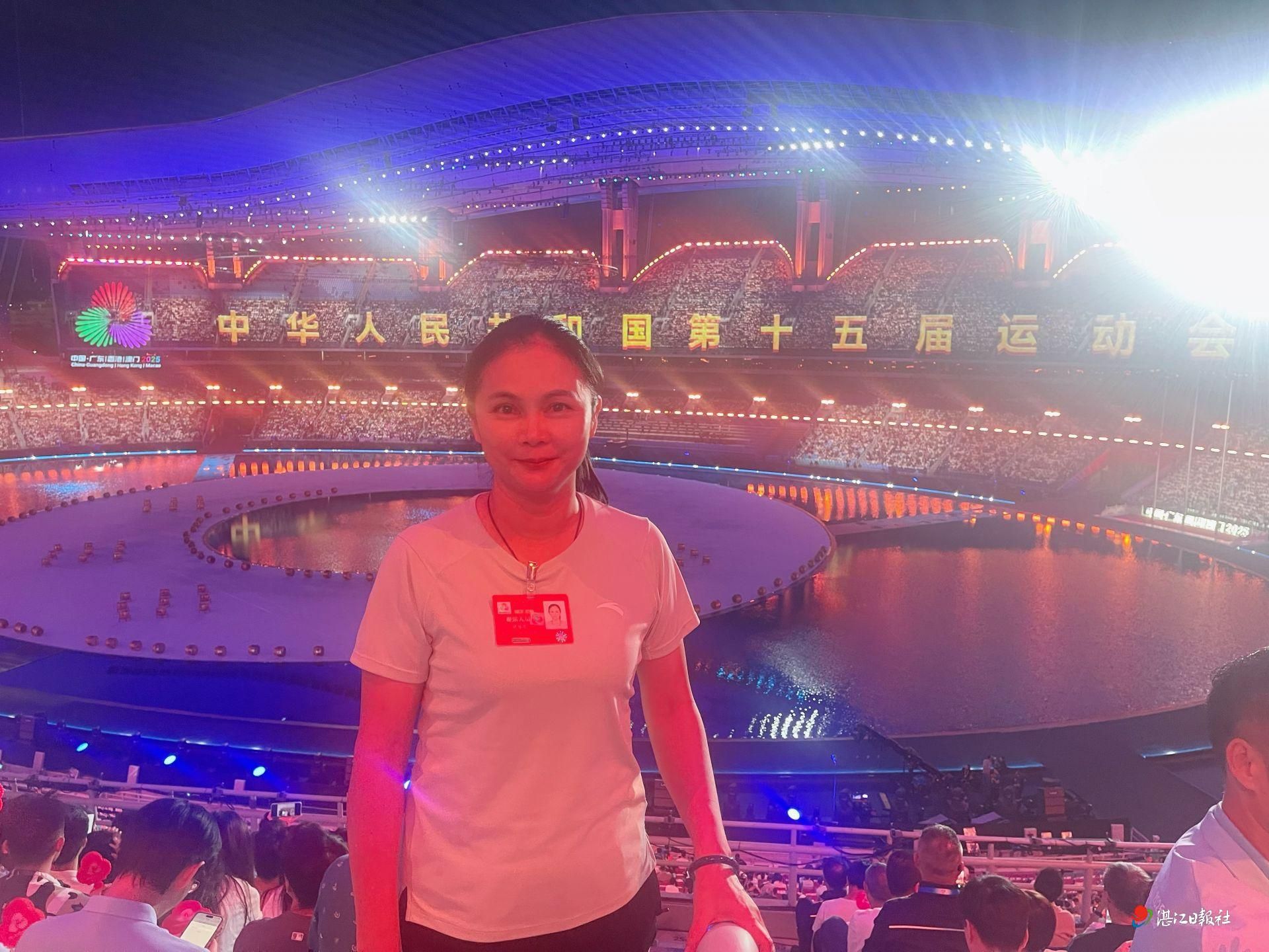 “全运会是国内规模最大、水平最高、影响最广的综合性体育盛会,作为运动员代表,能现场观看开幕式是一件很光荣的事。开幕式非常精彩,让我深受震撼!”来自赤坎的谭华燕今年6月代表广东队参加了十五运会群众体育七人制足球女子老将组比赛,获得第三名;四年前,她曾助力广东队夺得十四运会群众体育五人制足球女子老将组比赛金牌。