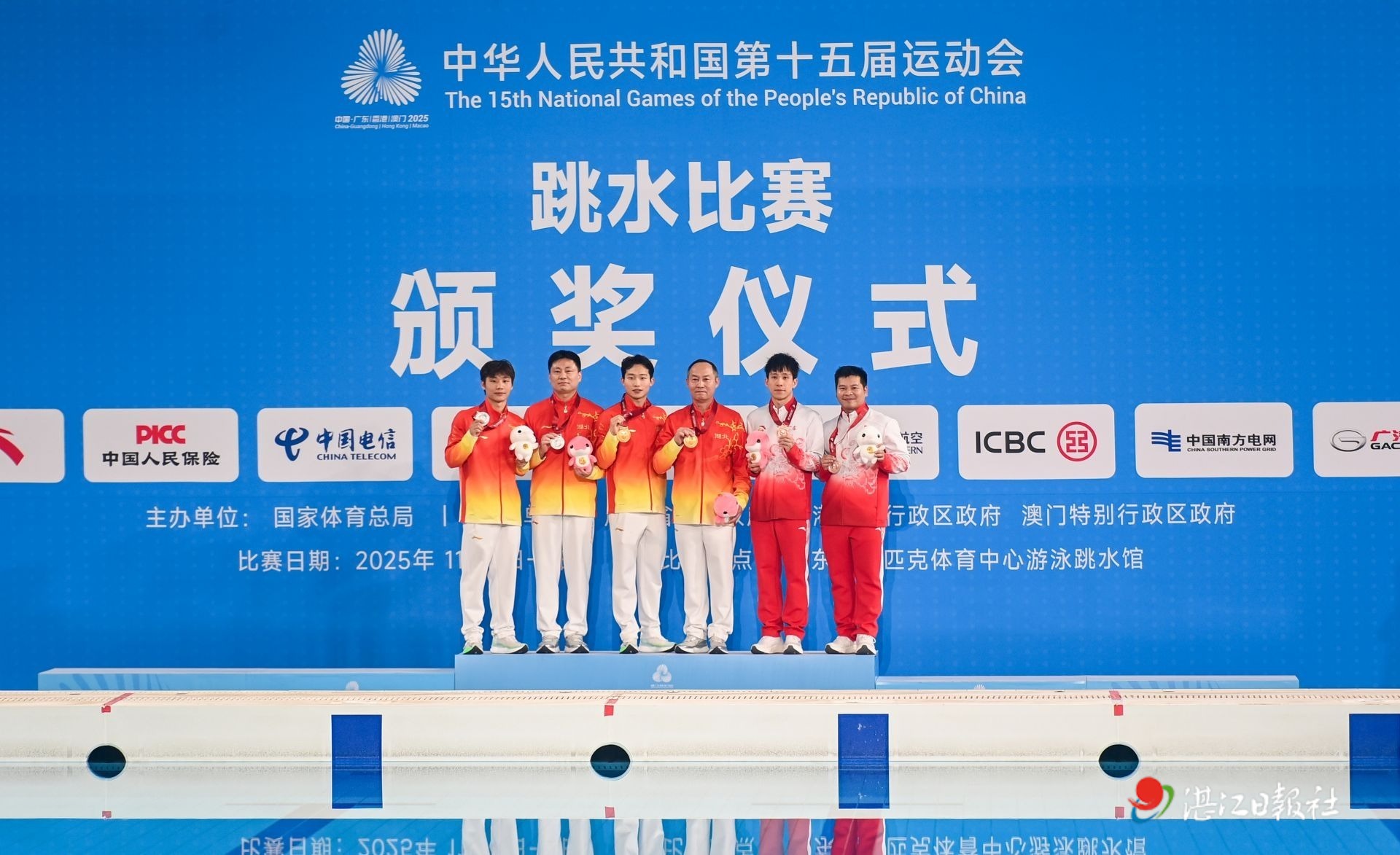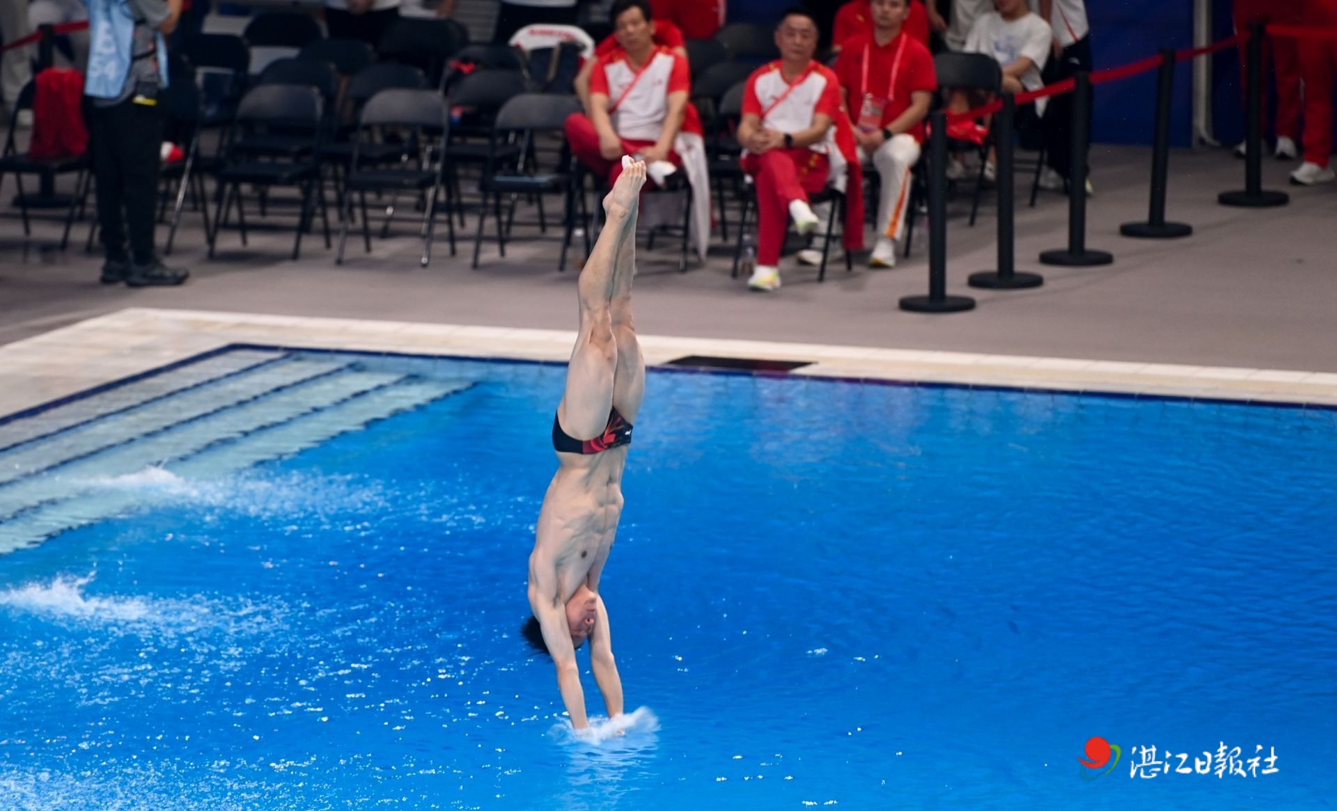 11月10日下午,第十五届全国运动会跳水男子单人3米跳板项目决赛在广州进行。代表广东队出战的33岁湛江籍名将何超宝刀不老,以良好表现夺得铜牌。
