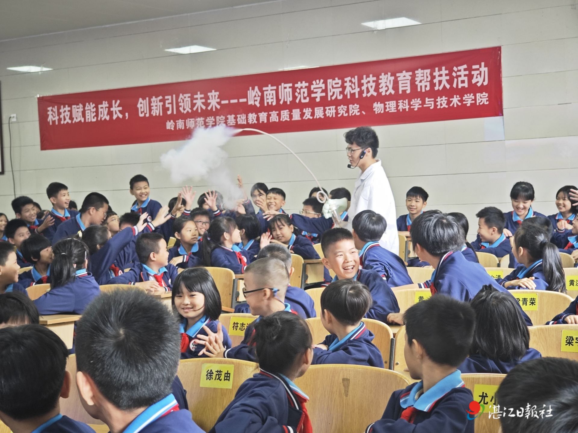 据悉,本次活动由岭师基础教育高质量发展研究院、市科协等单位联合举办,共设五场。首站结束后,团队当日下午走进麻章区第二幼儿园,后续还将陆续走进湖光中心小学、廉江市塘蓬镇中心小学等3所学校,把趣味科技体验带到湛江各地校园,让科学之花在更多青少年心中绽放。