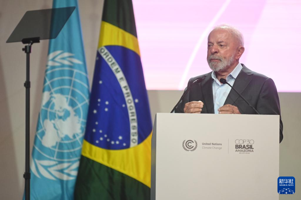 11月10日,巴西总统卢拉在巴西北部城市贝伦举行的《联合国气候变化框架公约》第三十次缔约方大会(COP30)开幕式上发表讲话。新华社发(卢西奥·塔沃拉 摄)