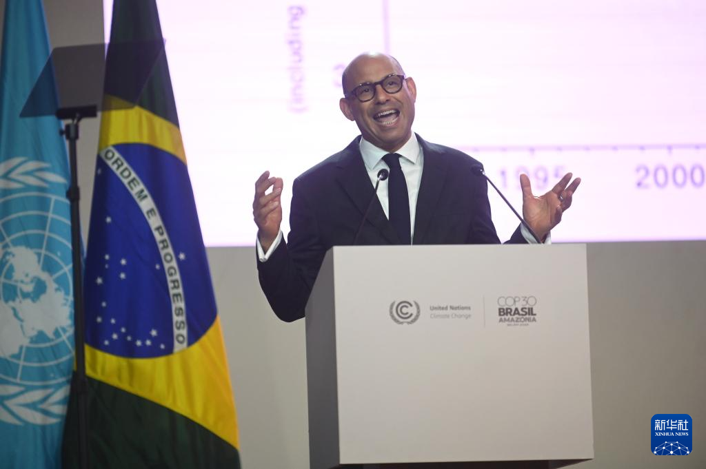 11月10日,《联合国气候变化框架公约》秘书处执行秘书西蒙·斯蒂尔在巴西北部城市贝伦举行的《联合国气候变化框架公约》第三十次缔约方大会(COP30)开幕式上发表讲话。新华社发(卢西奥·塔沃拉 摄)