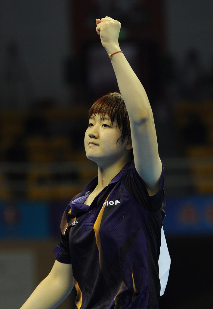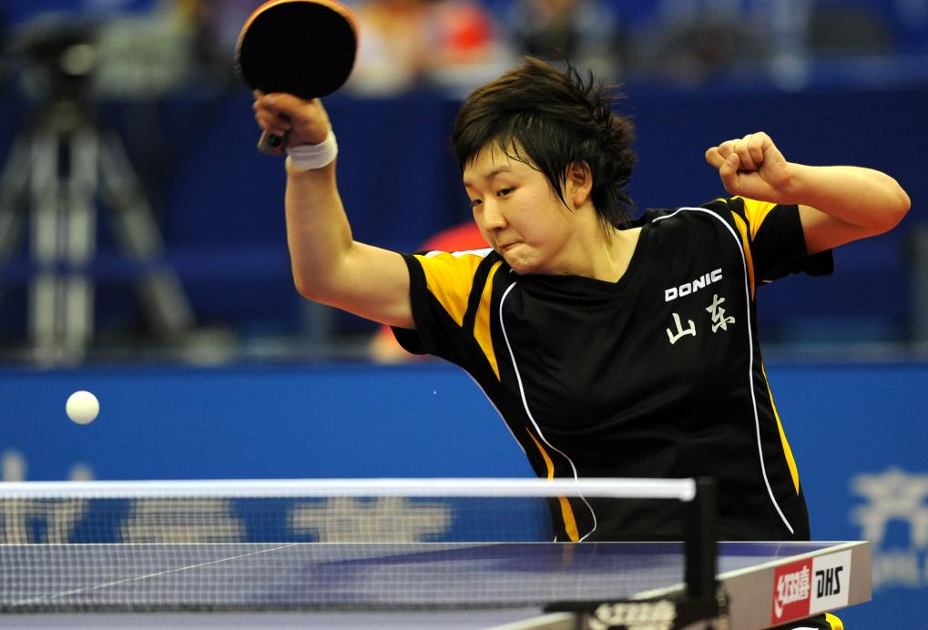 2009年9月29日,陈梦在第十一届全国运动会乒乓球女子单打首轮比赛中回球。新华社记者 韩瑜庆 摄