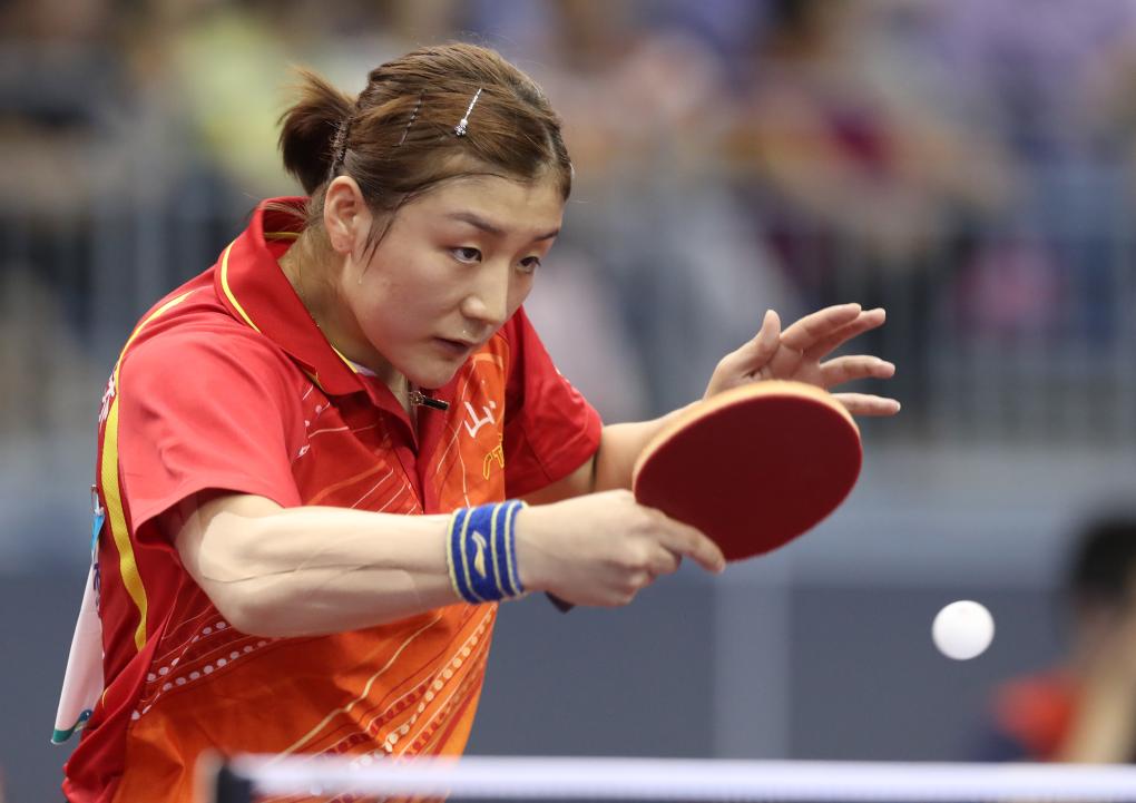 2017年9月4日,陈梦在第十三届全国运动会乒乓球女子单打四分之一决赛中回球。新华社记者 徐子鉴 摄