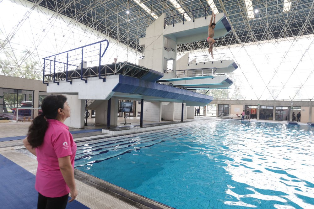 8月8日,在墨西哥首都墨西哥城国家跳水队训练中心,马进教练在墨西哥国家跳水队训练期间进行指导。新华社发(弗朗西斯科·卡涅多摄)
