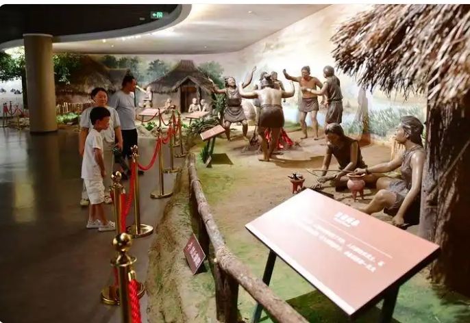 参观者在大汶口遗址博物馆内观看先民生活场景复原模型。 新华社 发