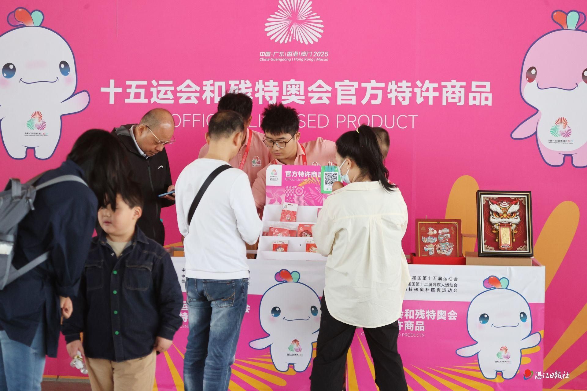 11月13日,记者从第十五届全国运动会武术散打比赛现场——湛江奥体中心体育馆看到,这里设有的十五运会官方特许商品零售点,吸引了大家纷纷驻足观看和选购。