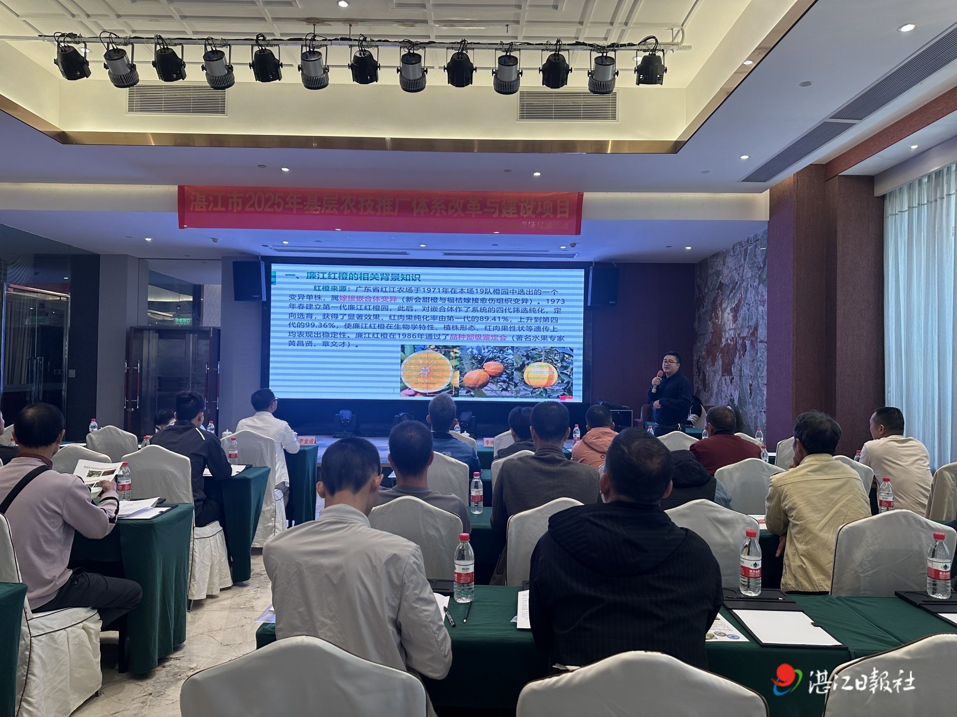 11月13日,由湛江市农业农村局、廉江市农业农村局、廉江市农技推广服务驿站联合举办的湛江市2025年基层农技推广体系改革与建设项目——县级农技推广服务驿站运营项目的农技培训暨现场观摩活动走进廉江市。活动聚焦廉江红橙、荔枝两大特色产业,以精准技术服务助力农业提质增效。