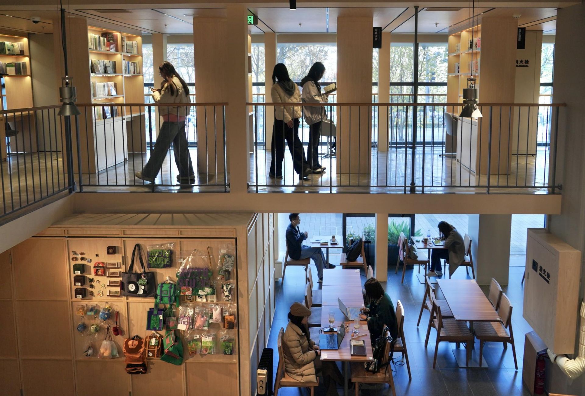 特别有意思的是,这家书店将社科、历史类等非虚构图书放在一层,而文学、漫画等虚构类图书居于二层。二层的书架会依次排开,如同图书馆的阵势,自习台和书架融合在一起,人和书无缝连接,谁也离不开谁。在这里,读者会和台版的《傲慢与偏见》《巴黎圣母院》等世界名著相遇,会与港版的《西游记》《香港文学大系》等谋面,也会和王小波、王朔、阿城、徐则臣、乔叶、止庵等北京作家的作品邂逅,还会和童年记忆《蜡笔小新》《逮捕令》等经典日漫重逢。