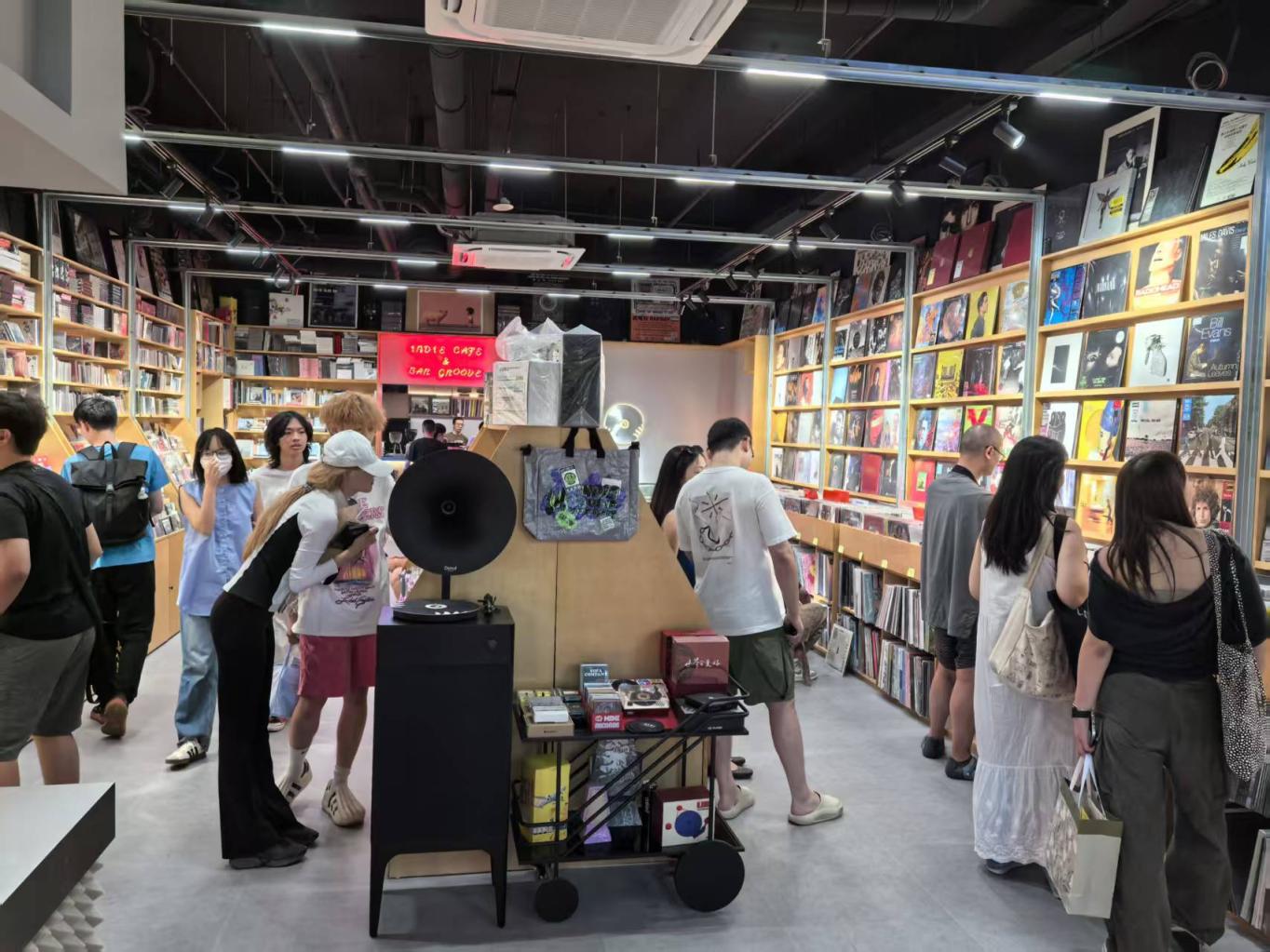 这家唱片店低调、质朴,更散发着激情和静谧,上万种CD光盘和黑胶唱片构成一个丰富多元的音乐天地,尤其是摇滚、重金属、朋克音乐专辑,不少都是市面上难以寻找到的。独音唱片创始人郭泳宏告诉记者,独音唱片有14年历史,搬到新的地址比老店大了许多,功能性也多了,之前都是单纯的唱片销售,现在除了唱片区域还有周边产品、咖啡饮品、活动区域、黑胶唱机设备等,还不定时在店里举办音乐人分享发布会。