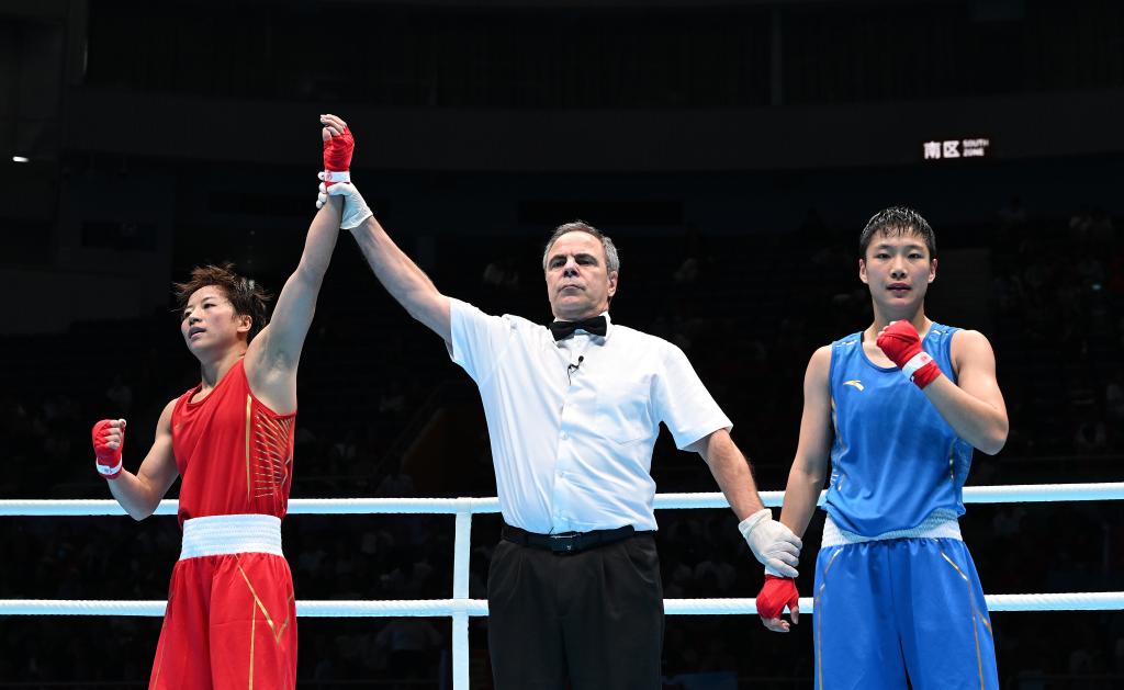 13日,在第十五届全国运动会拳击比赛女子50公斤级决赛后,获胜的吴愉走下拳台,寥寥数语,铿锵有力。