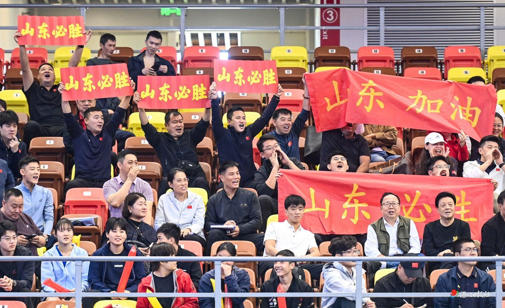 十五运会武术散打比赛男子团体1/4决赛上,观众为选手加油。 记者 郎树臣 摄