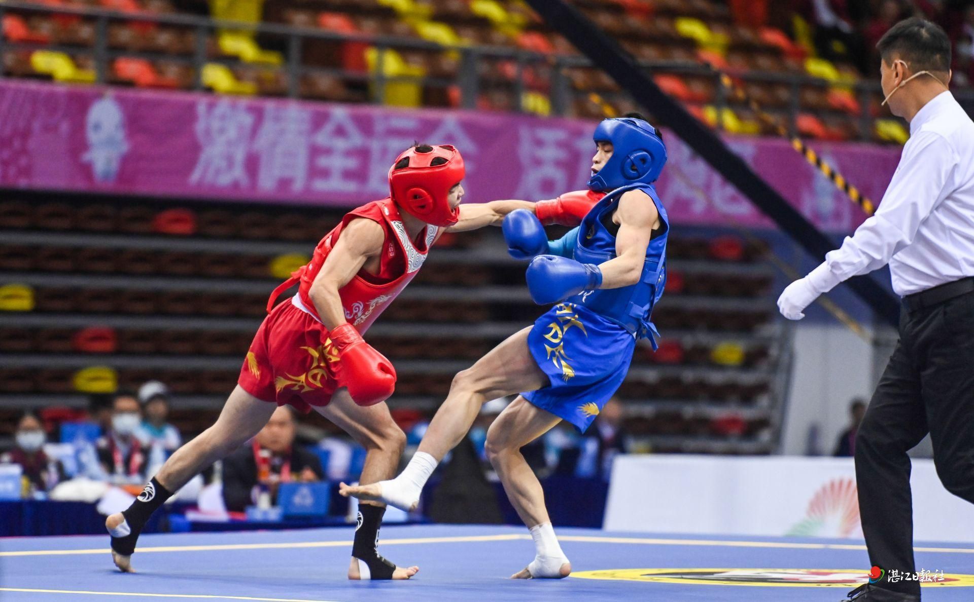 今天上午,十五运会武术散打比赛男子团体1/4决赛56公斤级比赛中,来自山东的张井民(红方)对阵来自河北的卢飞宁。最终山东队以3:0的绝对优势晋级4强。 记者 郎树臣 摄
