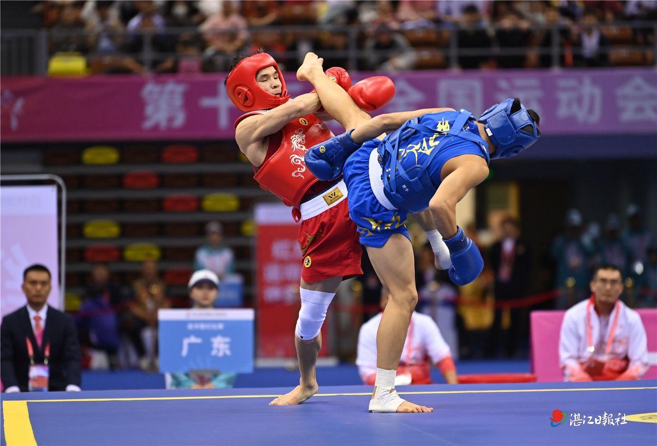 广东队王艺霖(红)对阵江苏队唐思硕。 记者张锋锋 摄