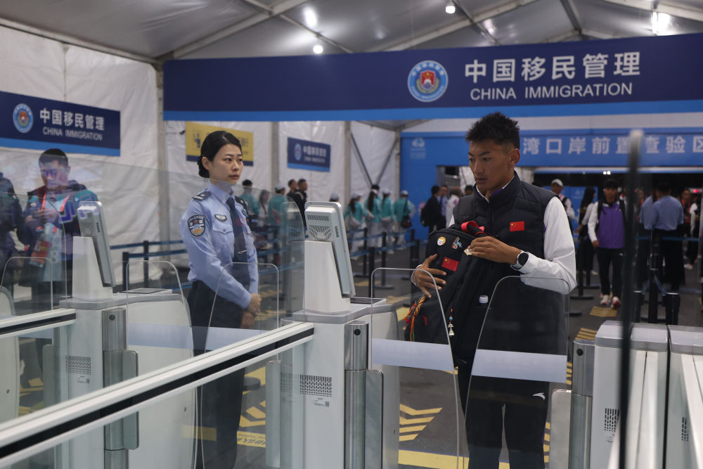 11月15日,比赛前,参赛选手在深圳湾口岸前置查验区完成查验手续。新华社记者 毛思倩 摄