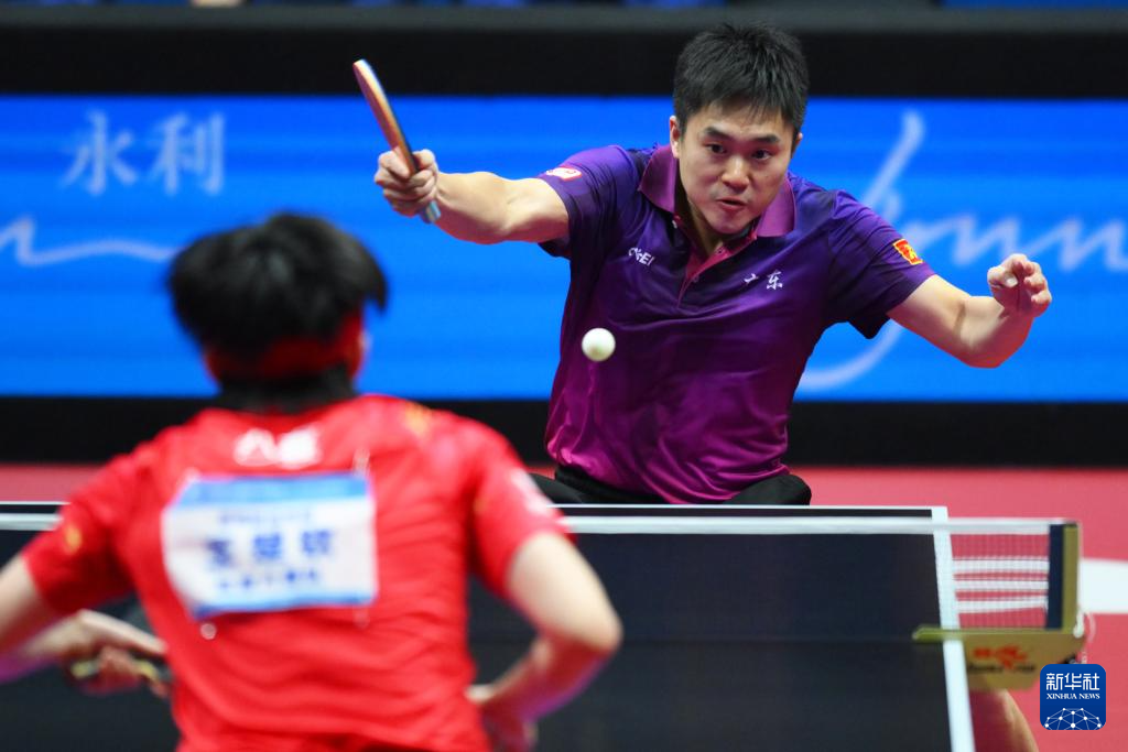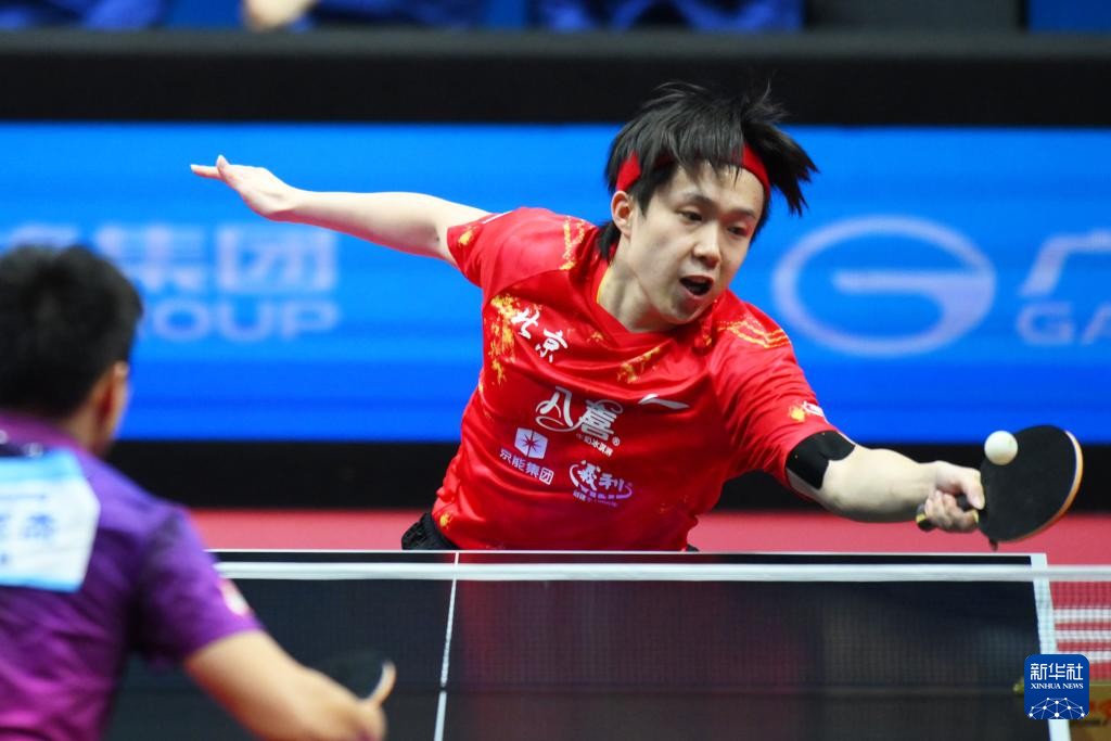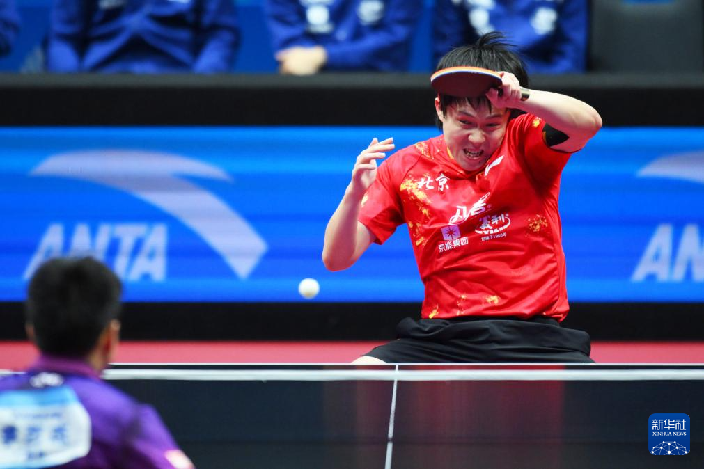 11月18日,北京队选手黄友政在男单比赛中回球。最终,他3比0战胜广东队选手林高远。
