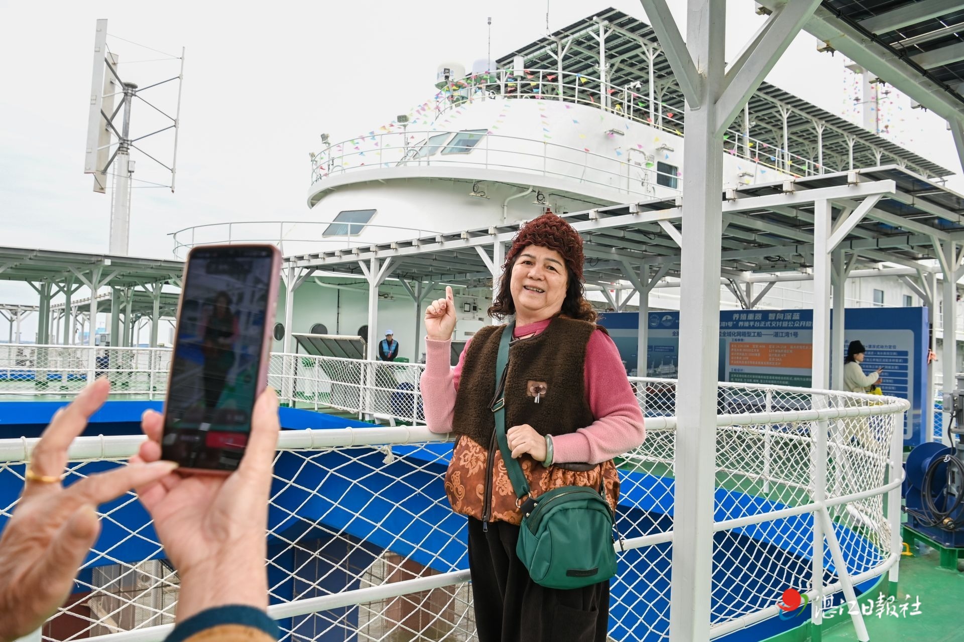 下午14时30分许,市民在工作人员引导下有序登船,参观时长约30分钟。在平台核心区域,大家被智能化饲料投喂系统、全维度养殖监测设备等先进设施吸引,纷纷驻足拍照、询问细节。“既能自主航行避台风,又能用绿色能源供电,这才是现代化海洋牧场的样子。”市民李先生在参观后难掩兴奋之情。