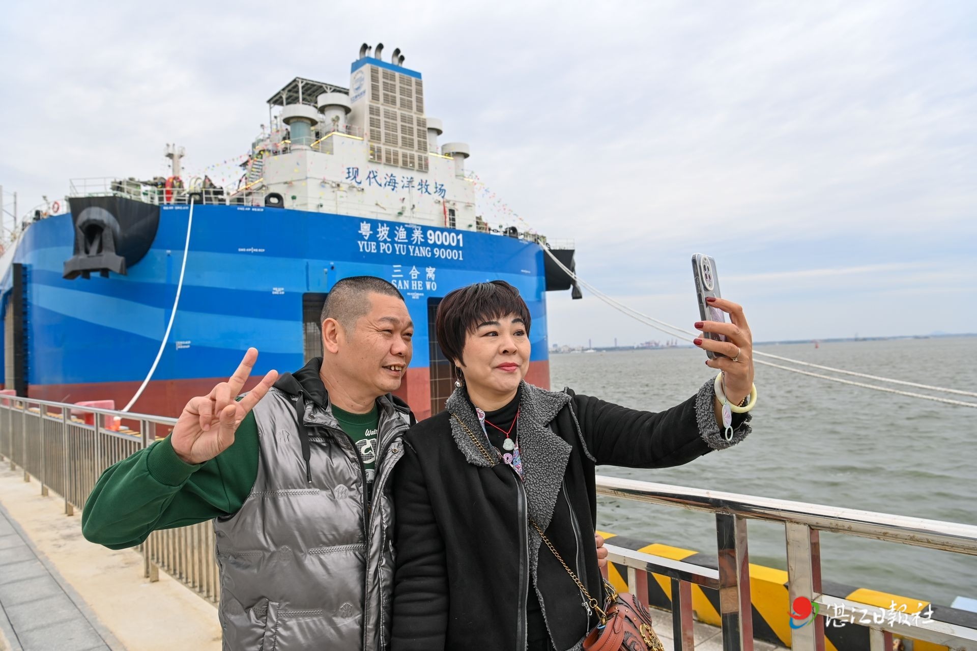 11月19日下午,湛江招商国际邮轮港码头人头攒动,由湛江湾实验室自主研发的全球首创漂浮式动力定位养殖平台“湛江湾1号”正式向市民开放,预约成功的市民陆续登舱,近距离感受这座海上“钢铁巨鲸”的科技魅力。