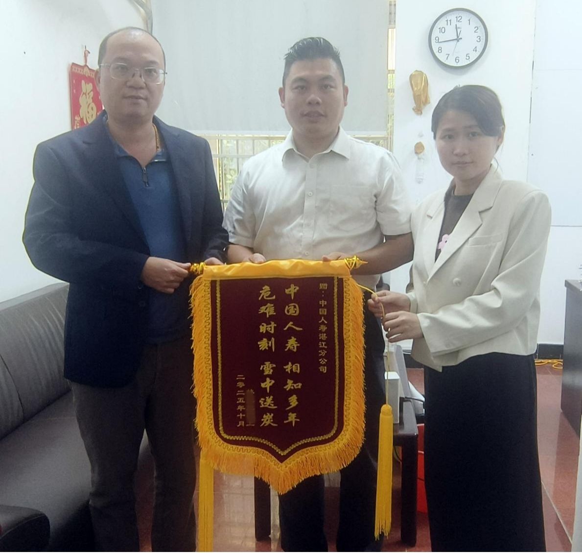 每一面锦旗,都是一份沉甸甸的信任;每一次理赔,都是一次承诺的兑现。未来,湛江国寿将继续秉持“国寿好服务”理念,深入践行中国特色金融文化,以实际行动守护千家万户的安心生活,为构建和谐社会、提升人民群众的获得感、幸福感与安全感,贡献国寿力量和湛江担当。