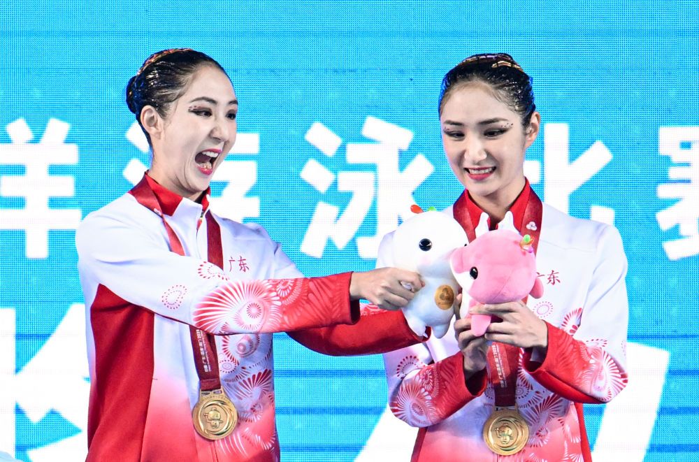 事实证明,双胞胎在花游项目中的确有强大优势。各自拥有男、女两对双胞胎的北京队、四川队,分别斩获集体项目银牌、铜牌;女子双人项目中,广东“姐妹花”王柳懿/王芊懿夺金,北京队林彦含/林彦君摘银。