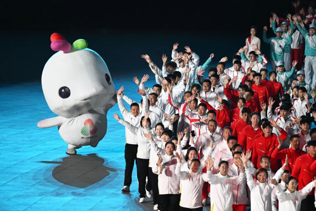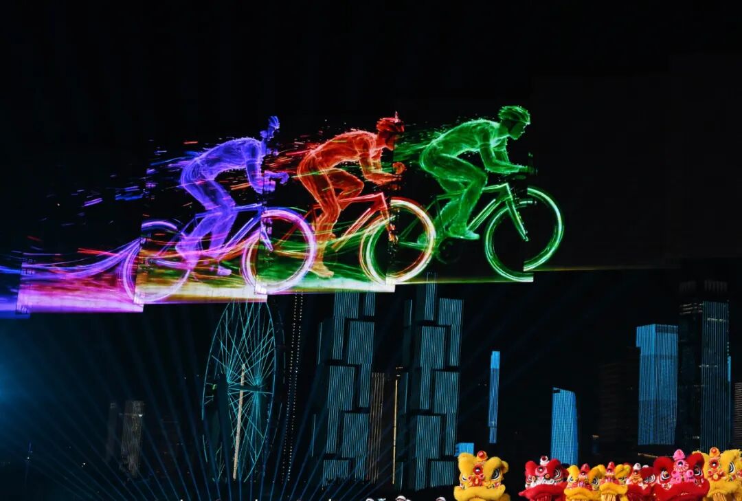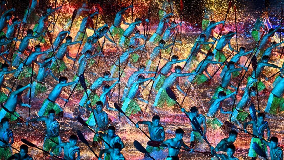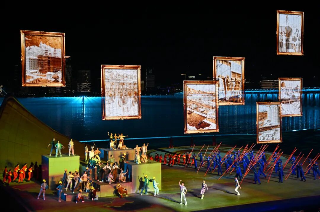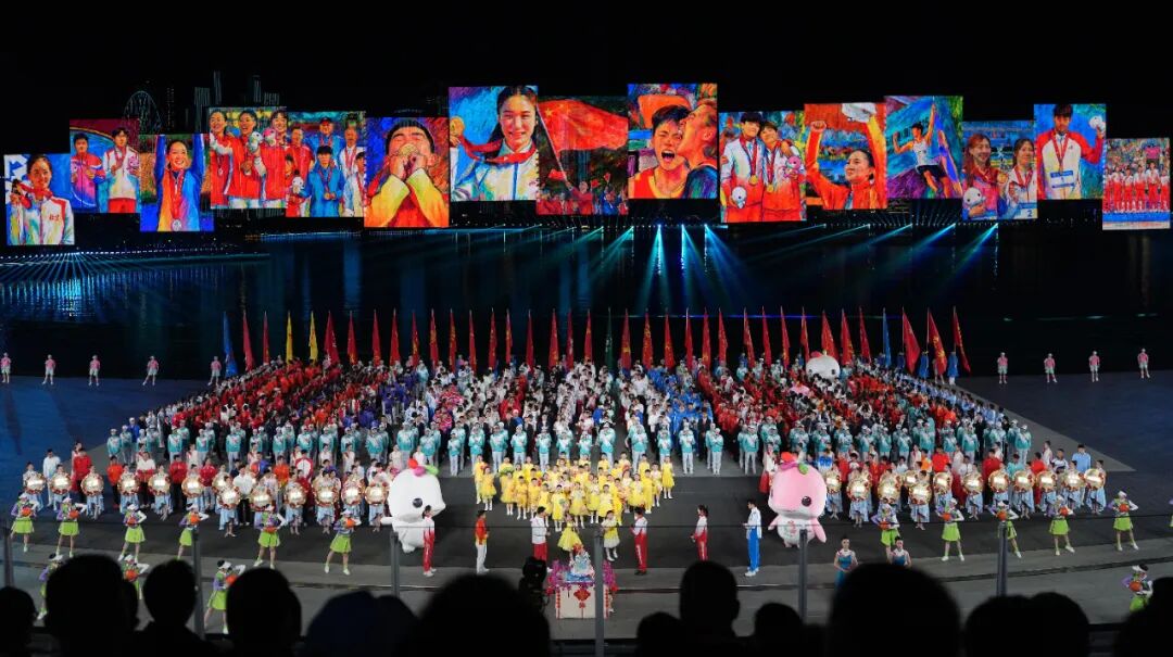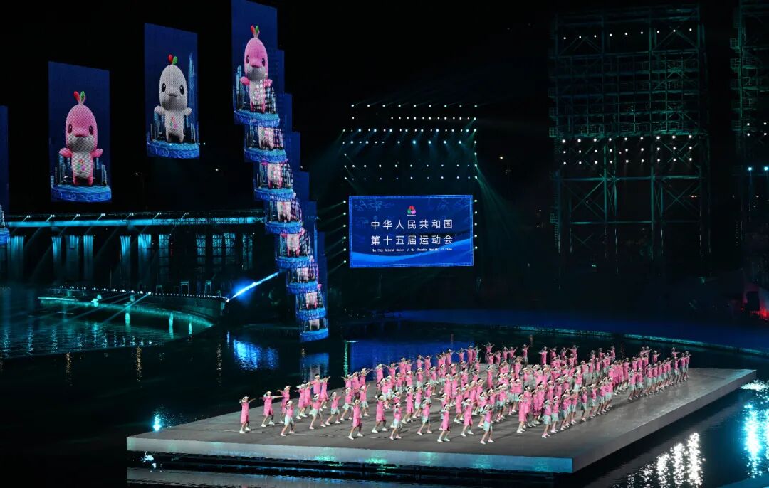 11月21日,演员在闭幕式现场表演。当日,第十五届全国运动会闭幕式在广东深圳前海欢乐剧场举行。新华社记者 陈益宸 摄