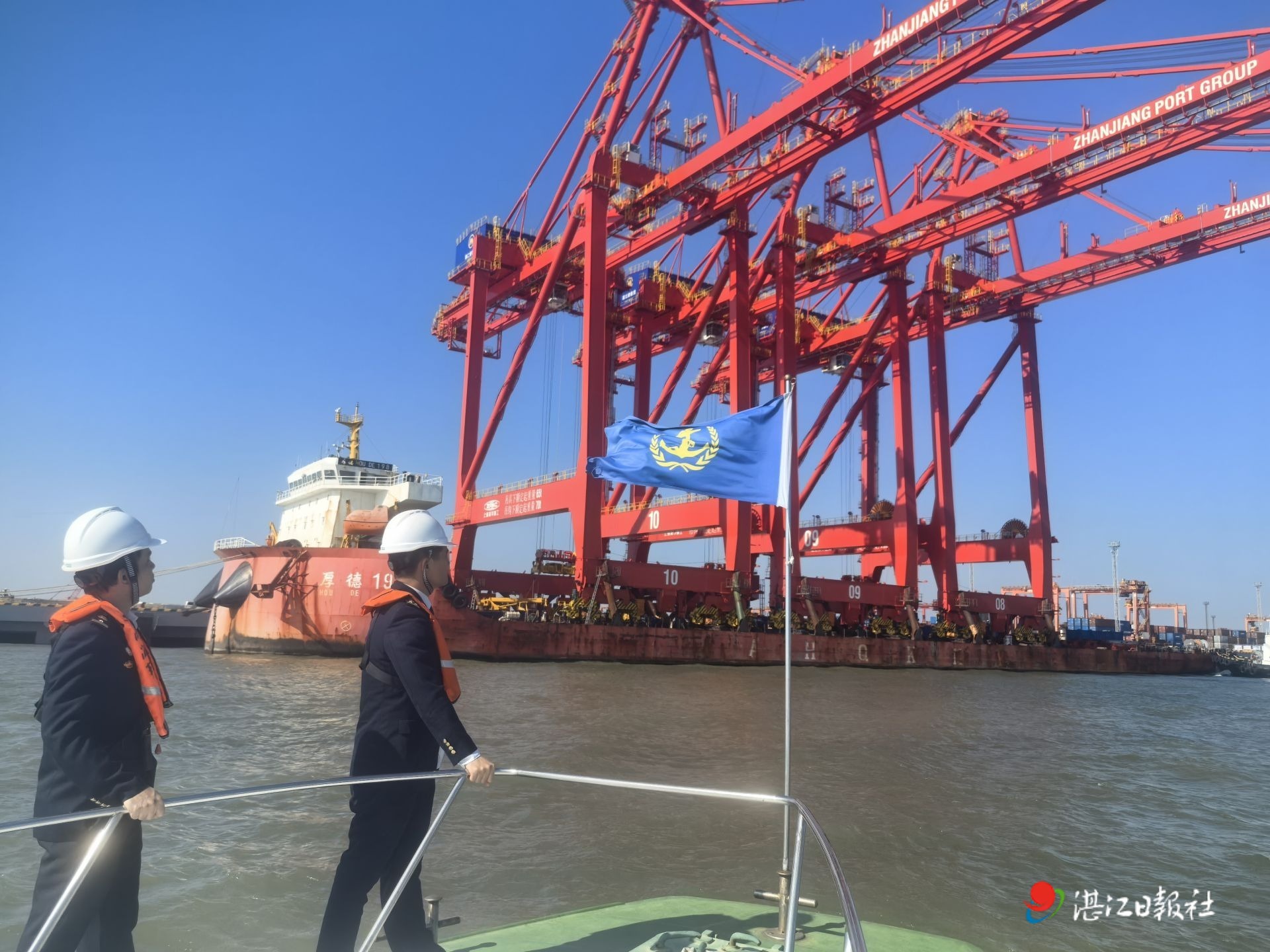 11月22日,在湛江海事局“海巡09056”轮和“海巡09058”轮的护航下,“厚德198”轮载运3台超大型集装箱码头岸桥安全进港,湛江港宝满港区集装箱码头一期扩建工程项目即将进入岸桥设备安装调试工作阶段,为湛江港集装箱业务扩容升级按下“加速键”。