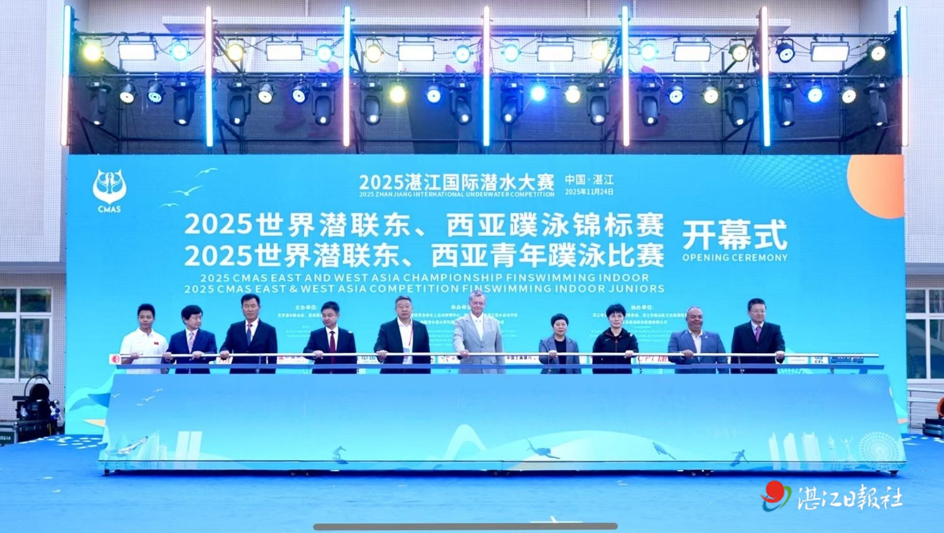 11月24日,2025湛江国际潜水大赛,2025世界潜联东、⻄亚蹼泳锦标赛,2025世界潜联东、⻄亚⻘年蹼泳比赛开幕式在国家体育总局湛江潜水运动学校举行。