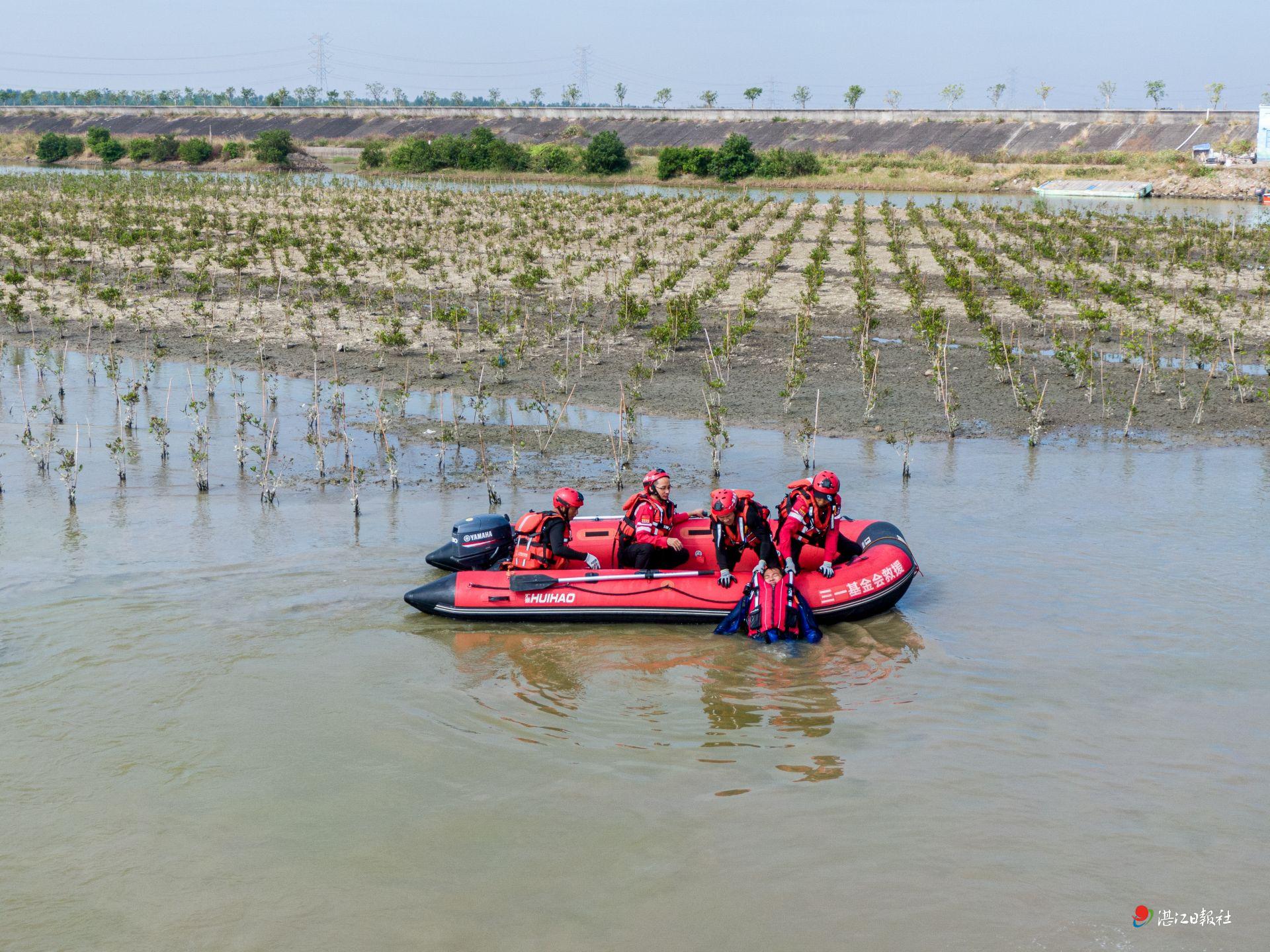 演练聚焦台风后在湛江生态修复项目作业区出现“火情+人员落水”复合险情,全面检验企业在生态敏感区域的应急响应、协同处置与生态防护能力,检验多部门台风灾害、突发火灾及水域救援协同处置能力,守护红树林生态安全。