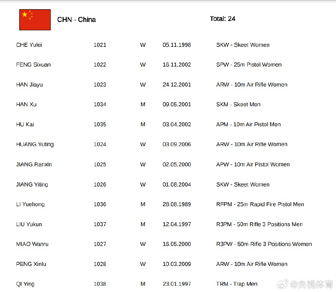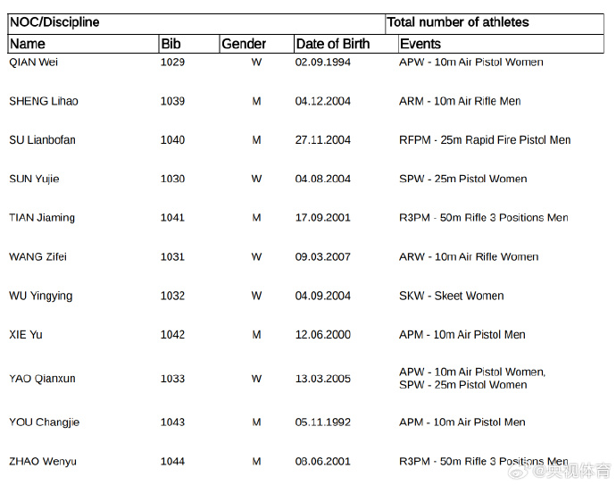 国际射联官网发布多哈射击世界杯总决赛名单,中国射击队盛李豪、黄雨婷、胡凯、刘宇坤、王子菲等名将位列其中。世锦赛结束后,国家射击队进入冬训,继续打磨技术。参赛队员将于12月4日至9日赴多哈参加总决赛,这也将是他们今年最后一场大赛。