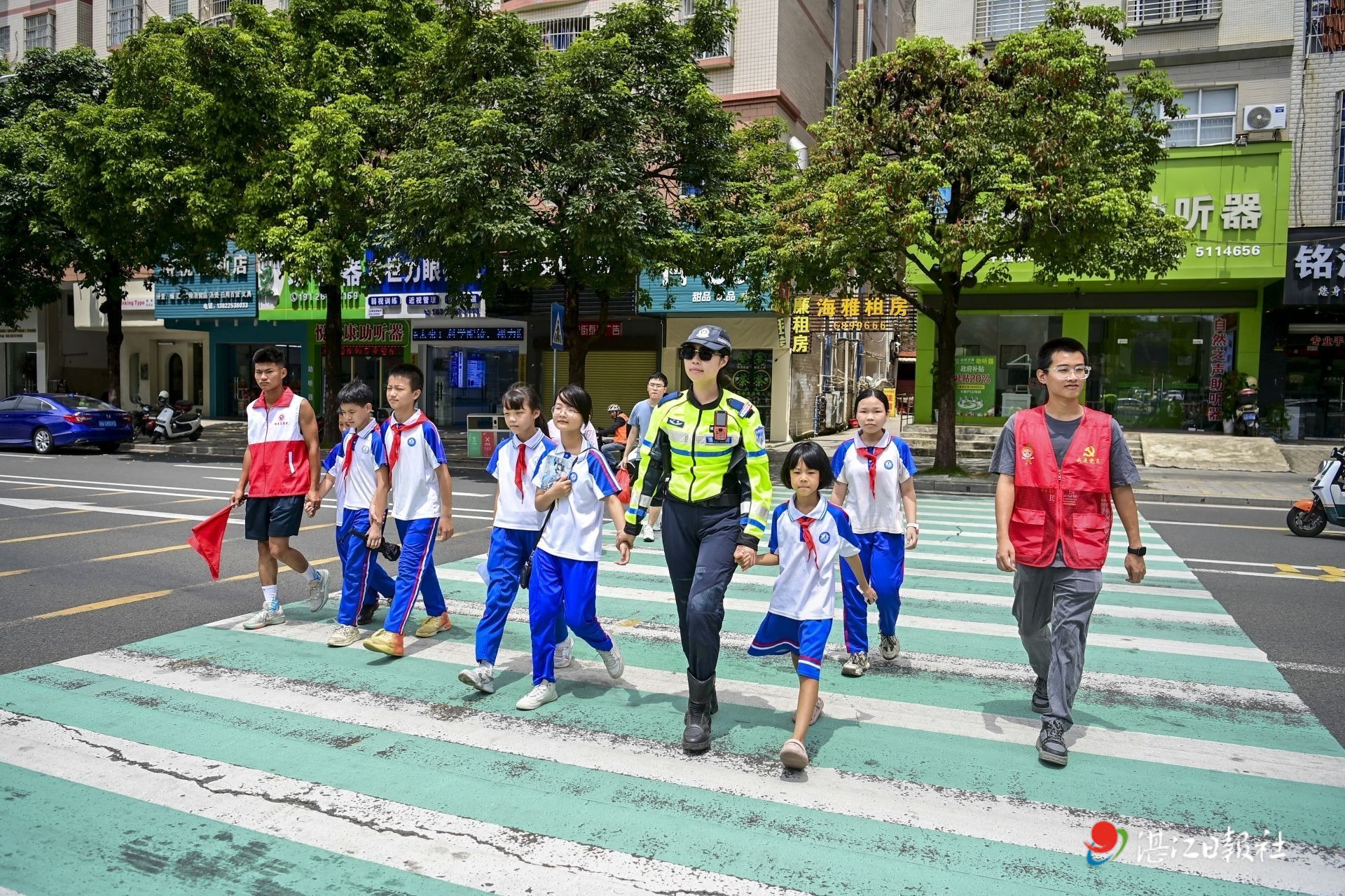 交警与志愿者组成的“护学岗”有序引导学生过马路。
