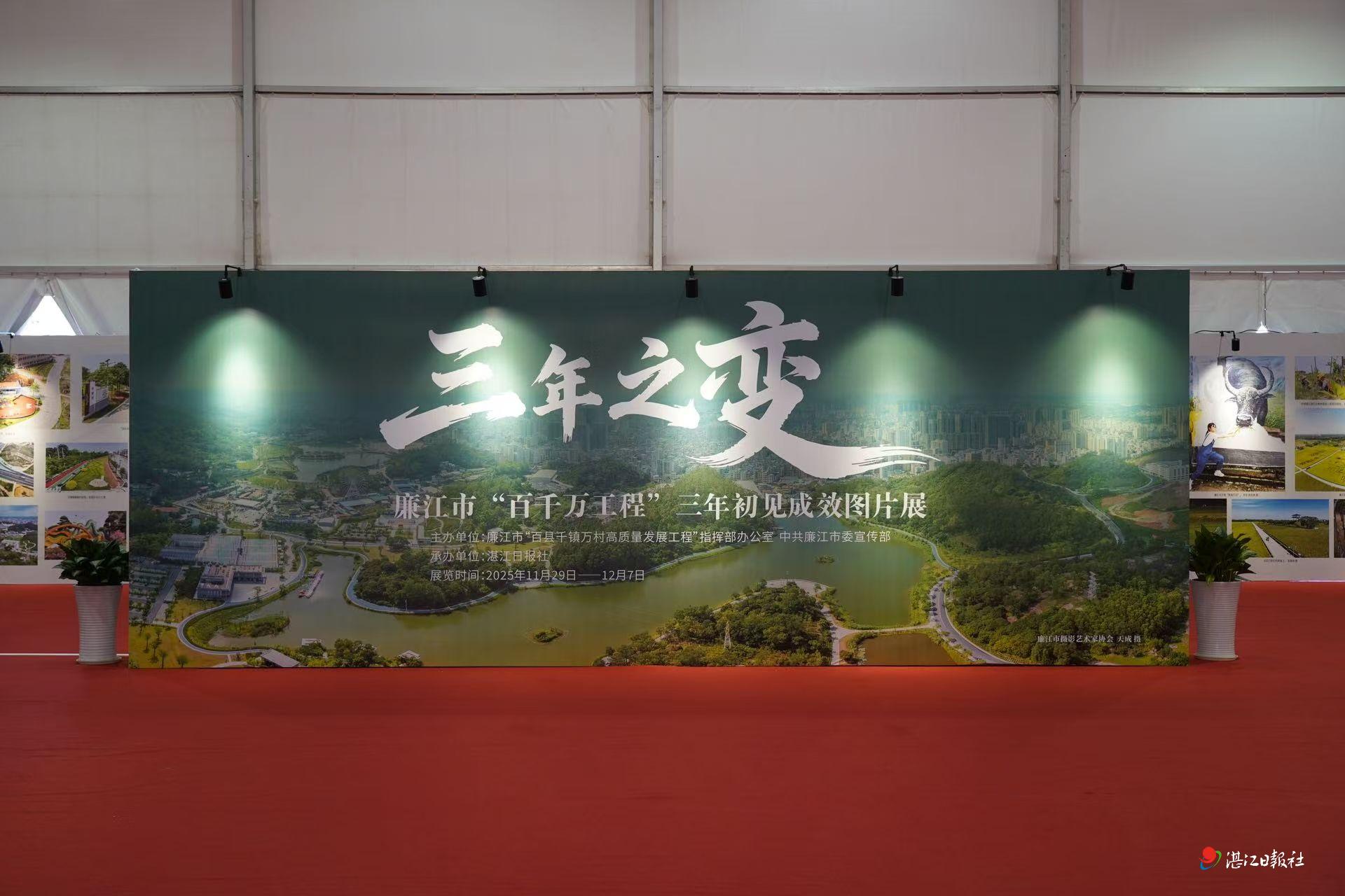 11月29日,廉江市“百千万工程”三年初见成效图片展与“缀美行动”展在风景如画的塘山岭风景区正式拉开帷幕。此次活动由廉江市“百千万工程”指挥部办公室、廉江市委宣传部联合主办,湛江日报社承办,展览以影像与艺术相结合的方式,全景呈现“百千万工程”实施以来,廉江三年来的发展蝶变与乡村焕新实践。展览将持续至12月7日,向公众免费开放。