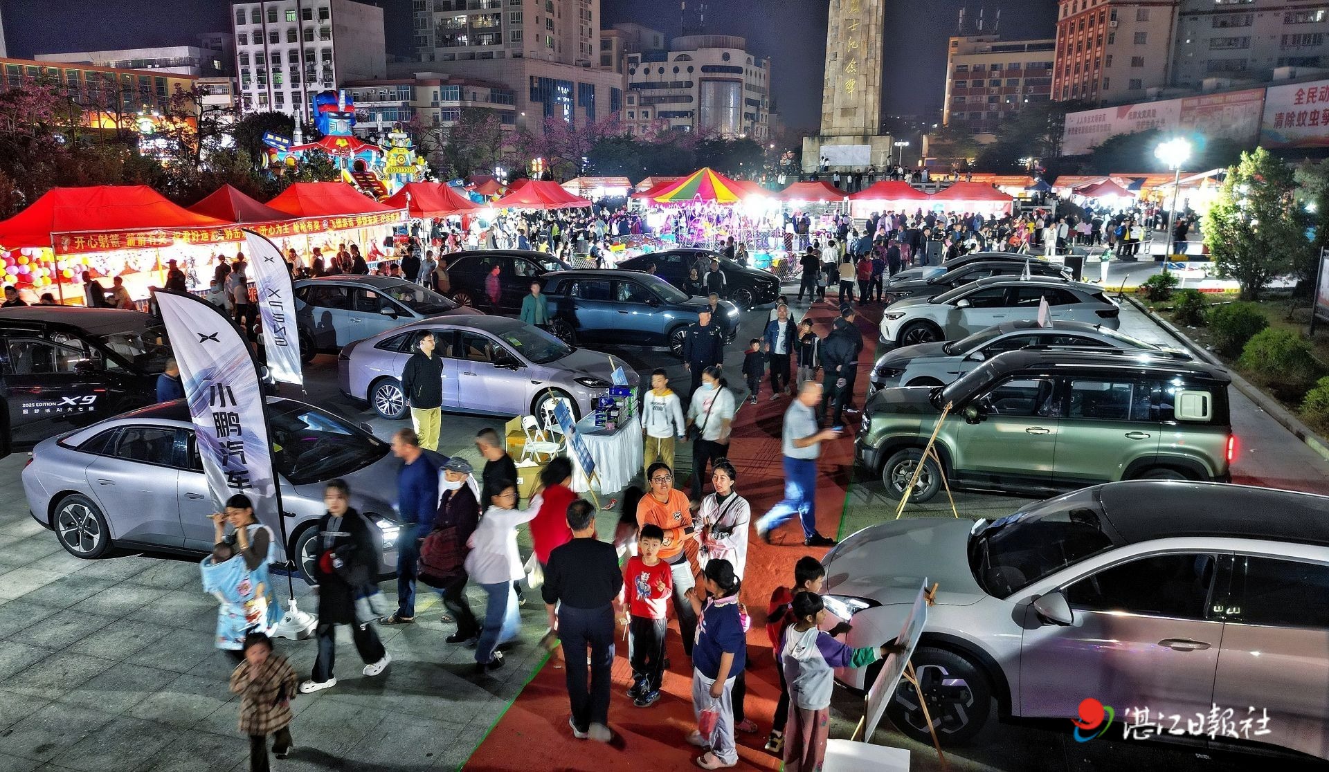 现场设有品牌汽车展区,蔚来、小鹏、一汽大众、一汽丰田、宝骏、广汽埃安、广汽昊铂、上汽大众、吉利雷达皮卡等品牌集体亮相,涵盖燃油与多款新能源车型,并推出“以旧换新”购车优惠。此外,美食展区网罗本地及外地特色小吃,让食客尽享舌尖盛宴。特产展区则汇集全国多地名优产品,方便游客一站式选购。