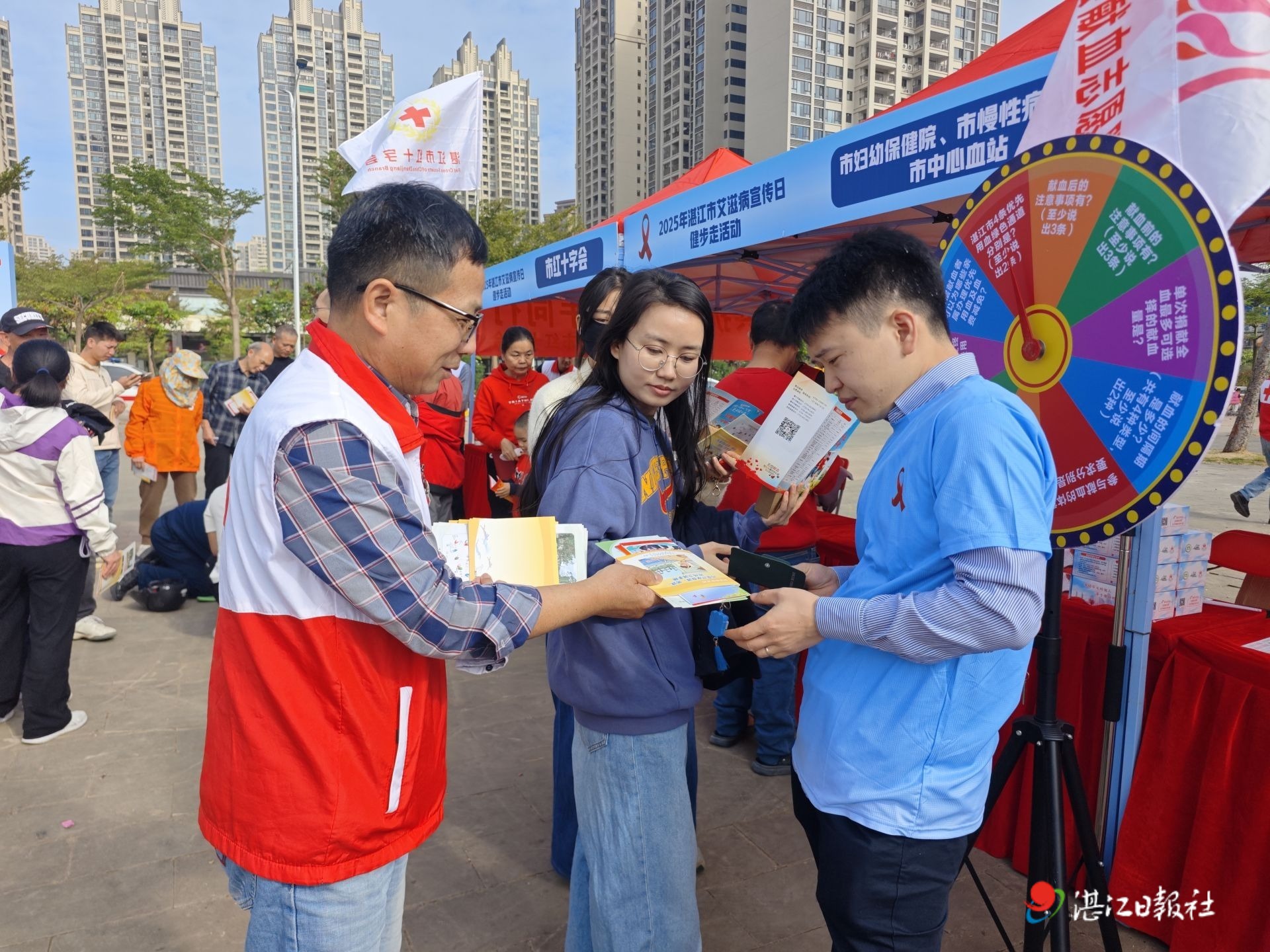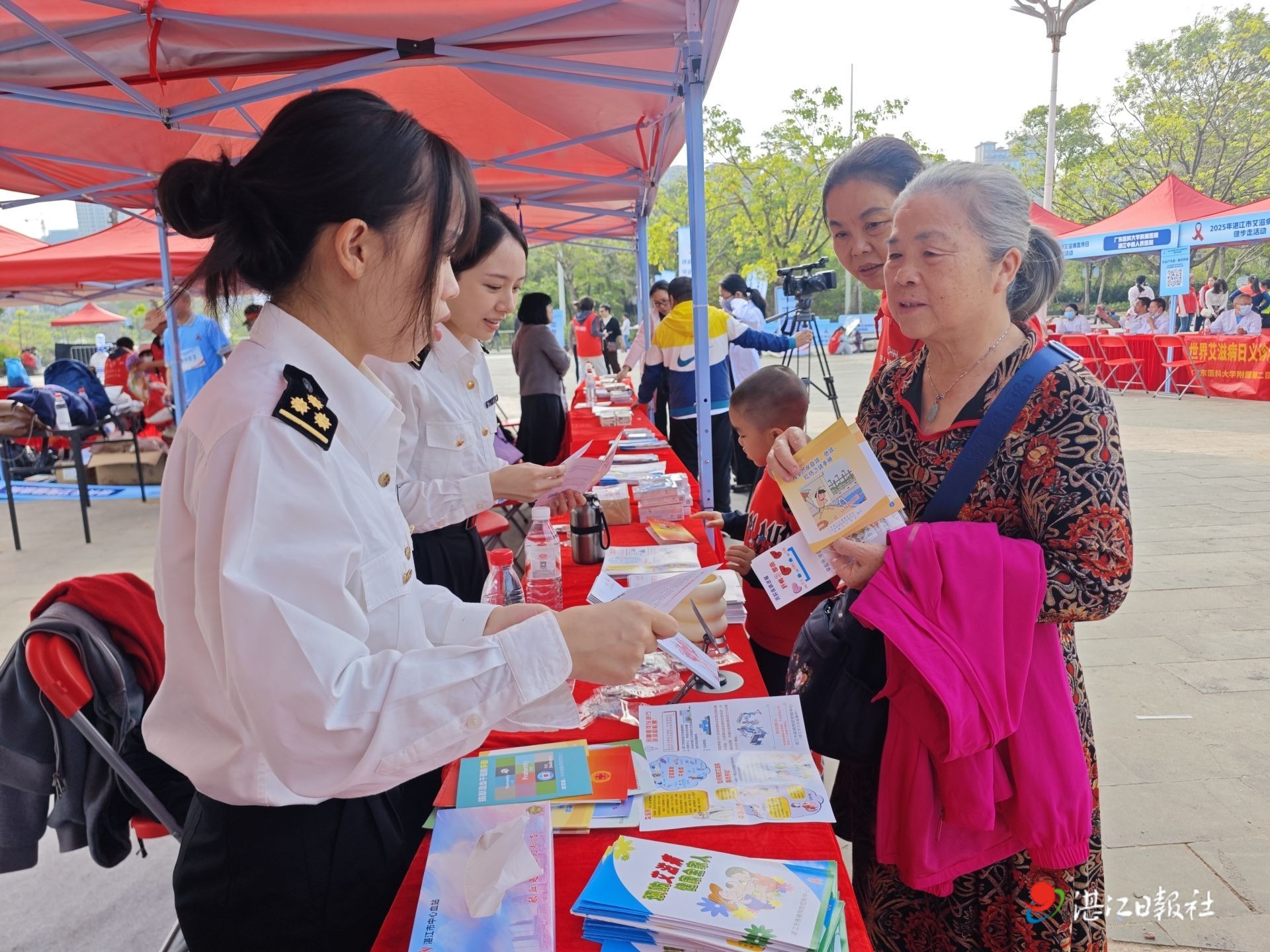 除健步走外,现场还设立了多个健康咨询台。来自湛江市疾控中心(湛江市卫生监督所)、基层社区卫生服务中心、慢性病防治中心及多家三甲医院的专业人员现场坐诊,耐心解答群众关于艾滋病传播途径、检测方式、预防措施等方面的疑问,针对常见的认知误区进行深入浅出的科普讲解。同时,工作人员向市民发放防艾宣传手册、健康科普折页等资料,并现场演示急救技能,帮助公众树立科学、理性的防艾观念。