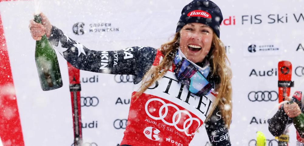11月30日,希弗林在比赛后庆祝胜利。图源:国际雪联官网