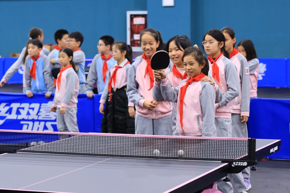 学生们体验乒乓球训练