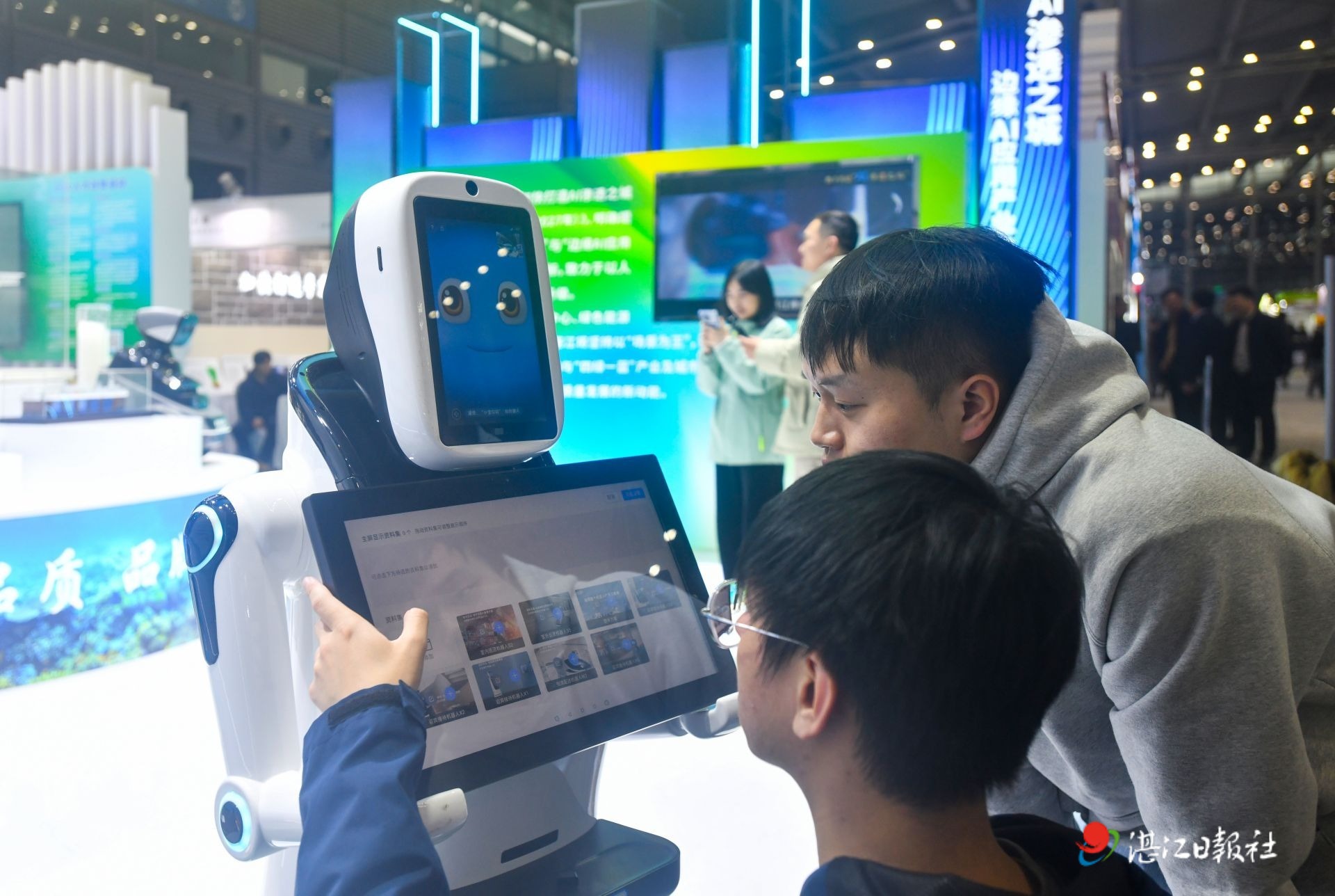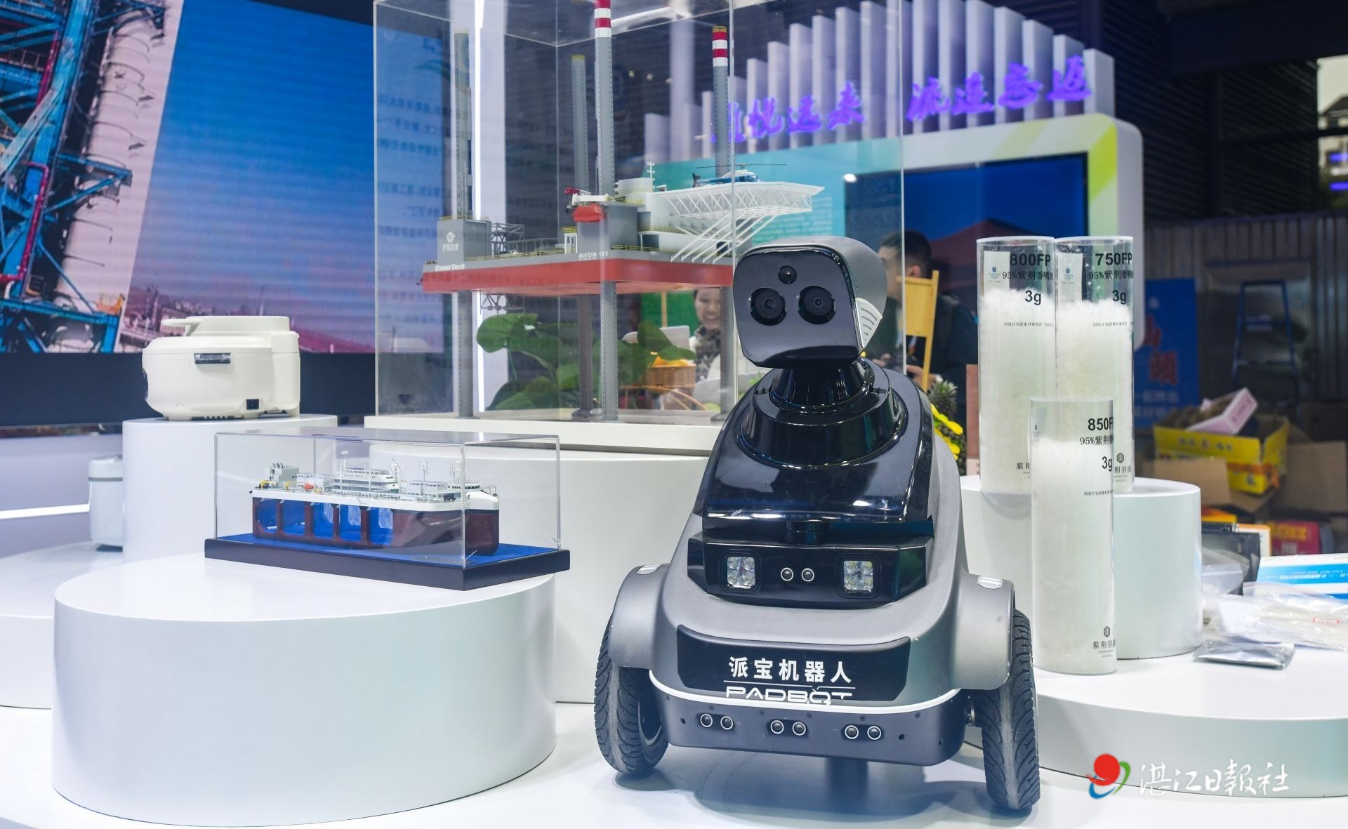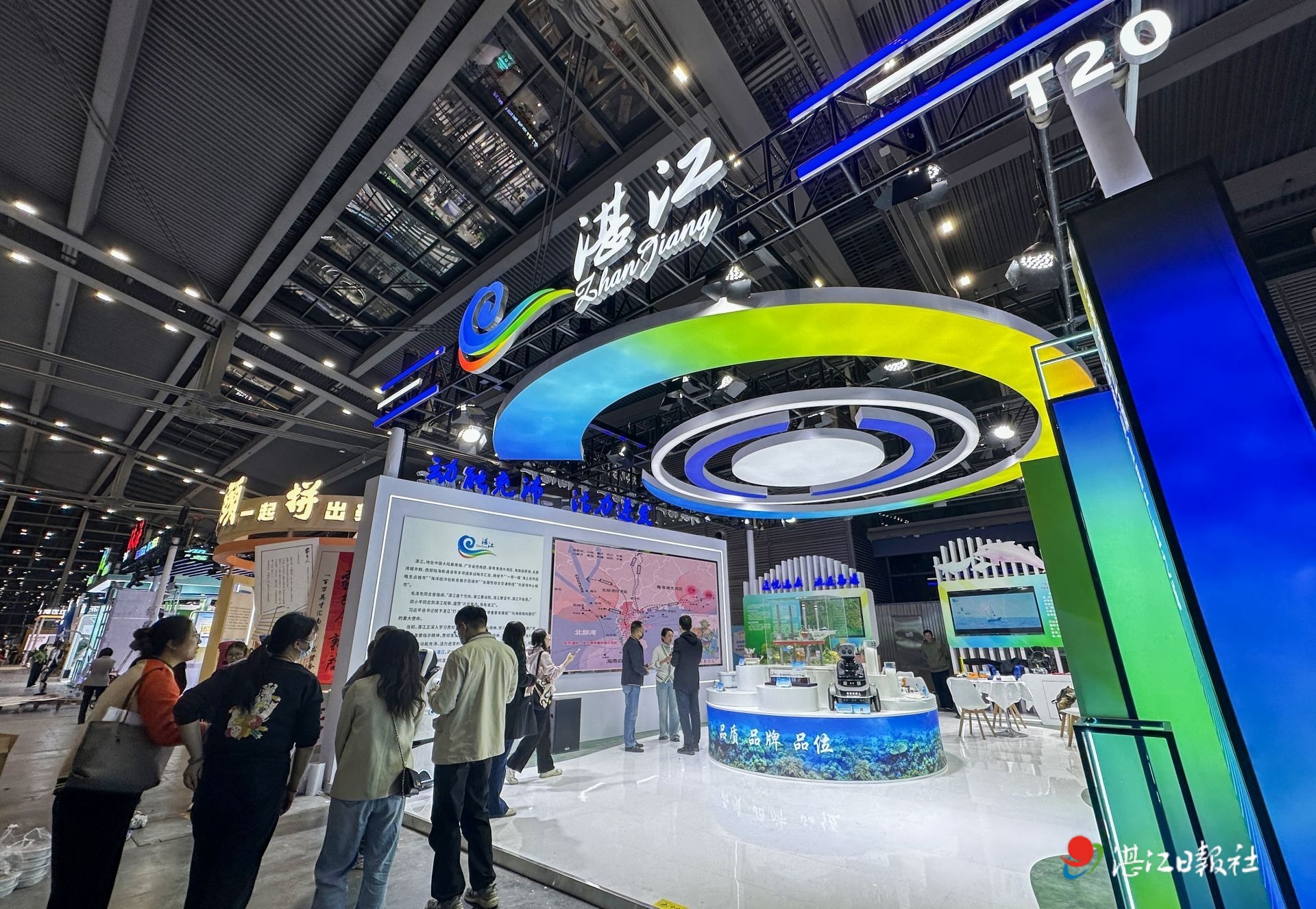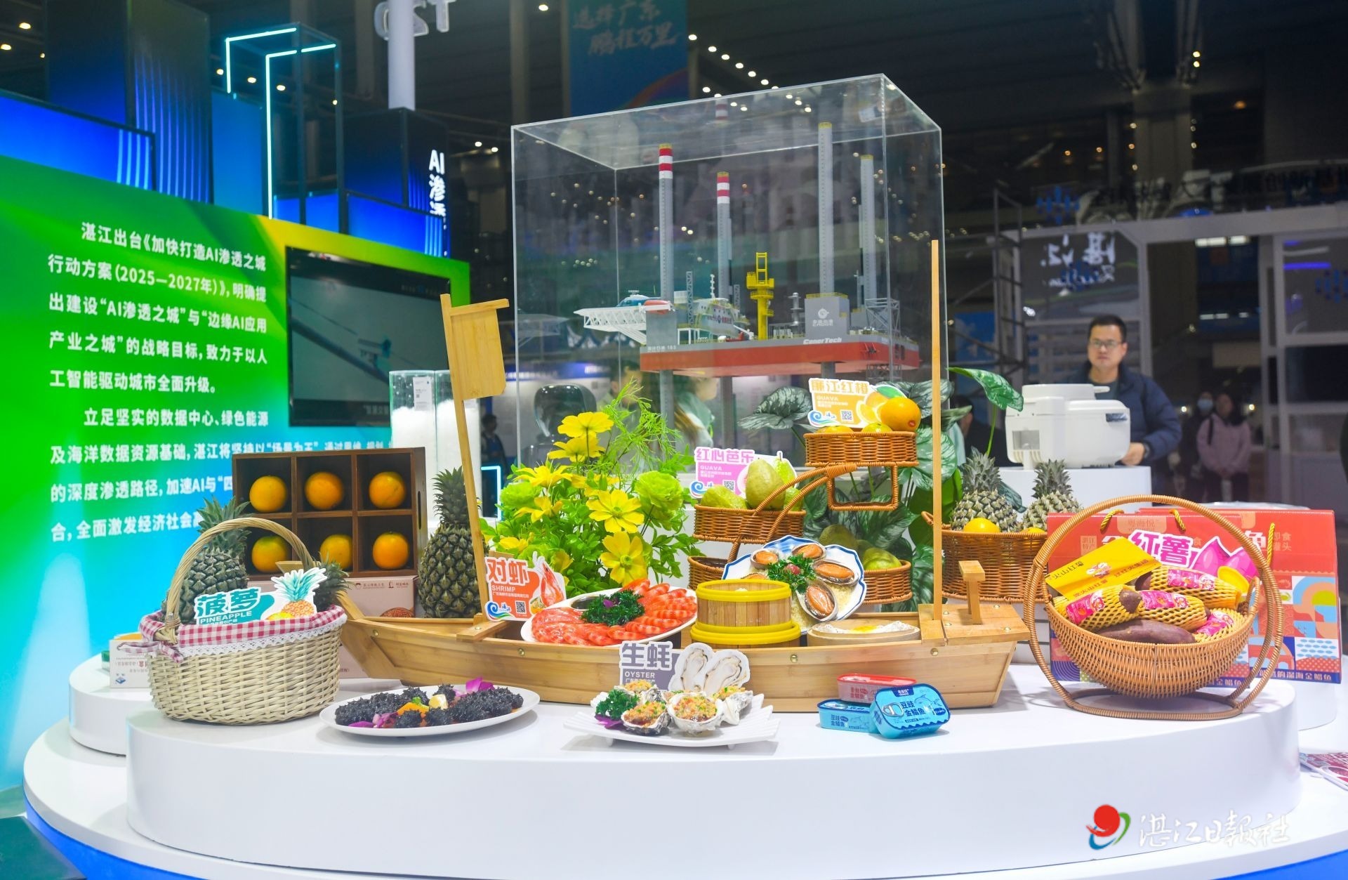 在众多展区中,以蓝色为主色调的湛江馆格外引人注目。展馆紧扣产业、生态、平安、鲜美、文明、幸福“六个湛江”主线,通过一件件展品亮出湛江的“硬核家底”与独特魅力。中海油钻井平台模型、“湛江湾一号”模型,直观展现湛江蓝色经济的雄厚实力;派宝机器人灵动亮相,展示湛江打造“AI渗透之城”和“边缘AI应用之城”的前沿成果;高端水上运动装备、新晋省超冠军吴川青年队签名球衣,诉说湛江建设“水上运动之城”“体育产业之城”的生动实践;蒲织、醒狮文创等非遗展品,传递着湛江深厚的文化底蕴;而金鲳鱼罐头、徐闻菠萝、廉江红橙等特色手信和海鲜美食,则全方位展现了“鲜美湛江”的独特韵味。