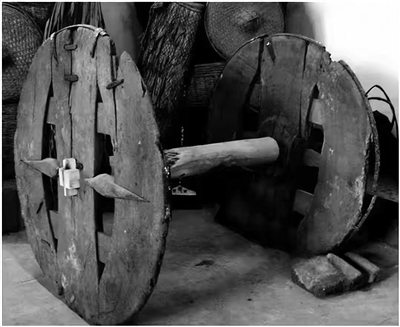 古代高脚牛车的车轮。